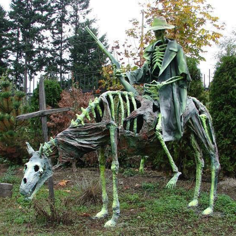 1. Эта статуя скелета изготовлена из высококачественного полимерного материала, который не легко выцветает, износостойкий и устойчивый к коррозии, и отличается прочностью.