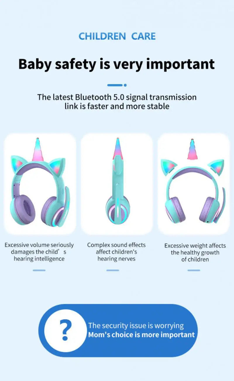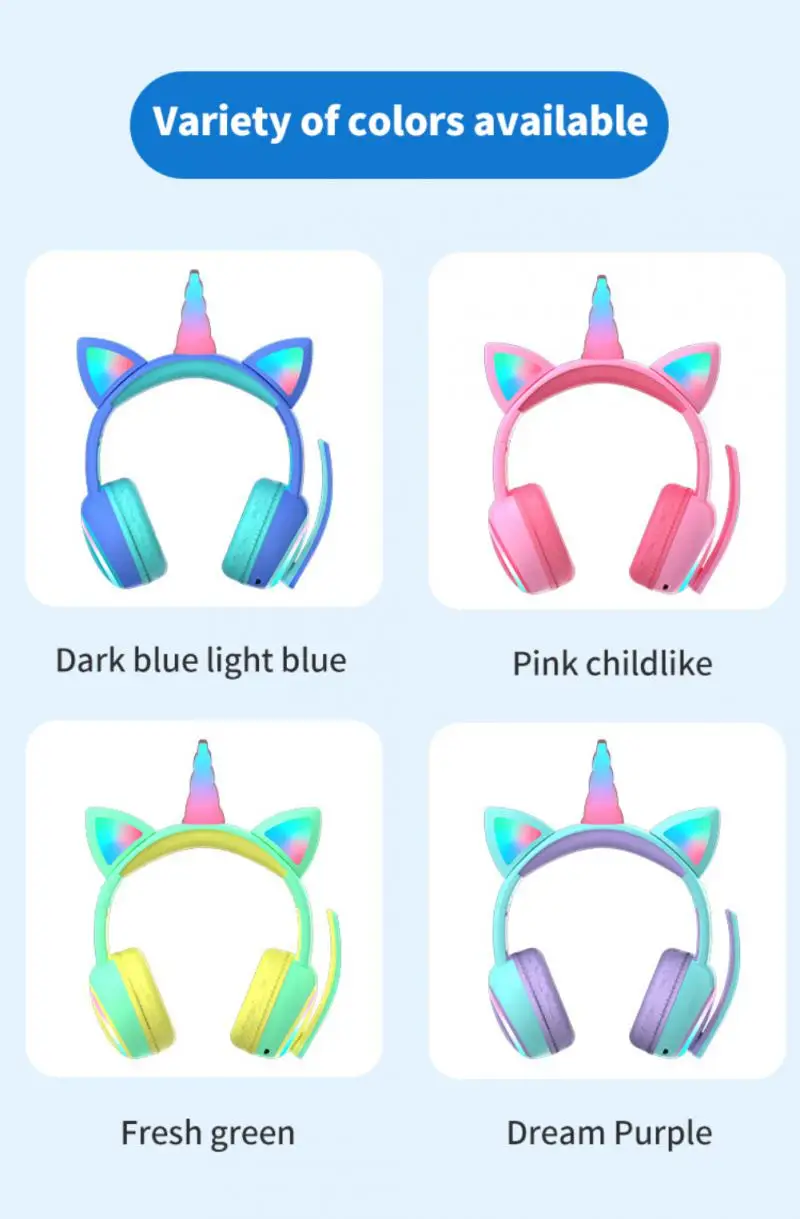 10.LED 3 цвета Единорог беспроводная гарнитура, подарки на день рождения детей, Детский праздничный подарок.