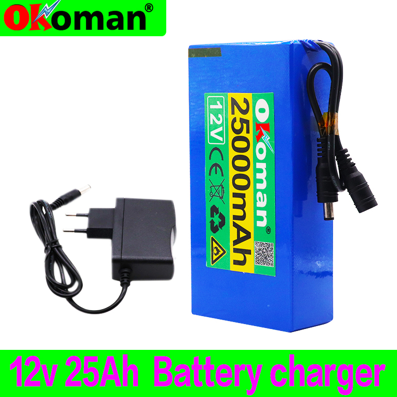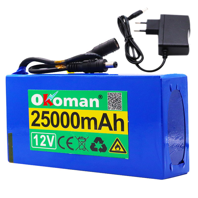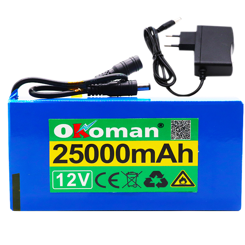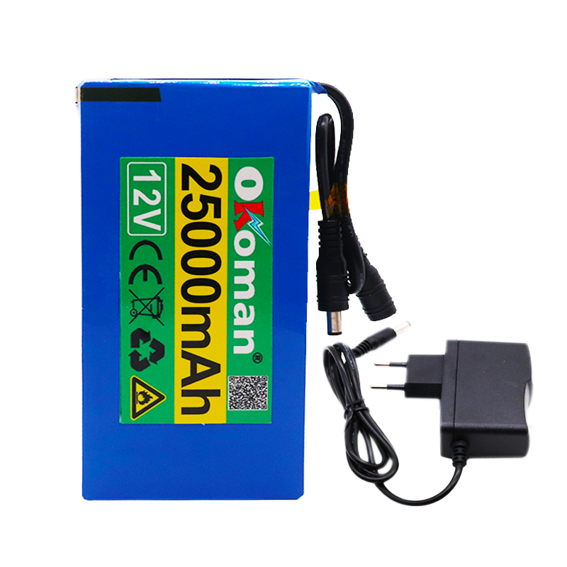 High Quality Super Rechargeable Portable Lithium-ion Battery DC 12V 25000mAh With EU Plug 12.6v 25Ah battery pack+charger
