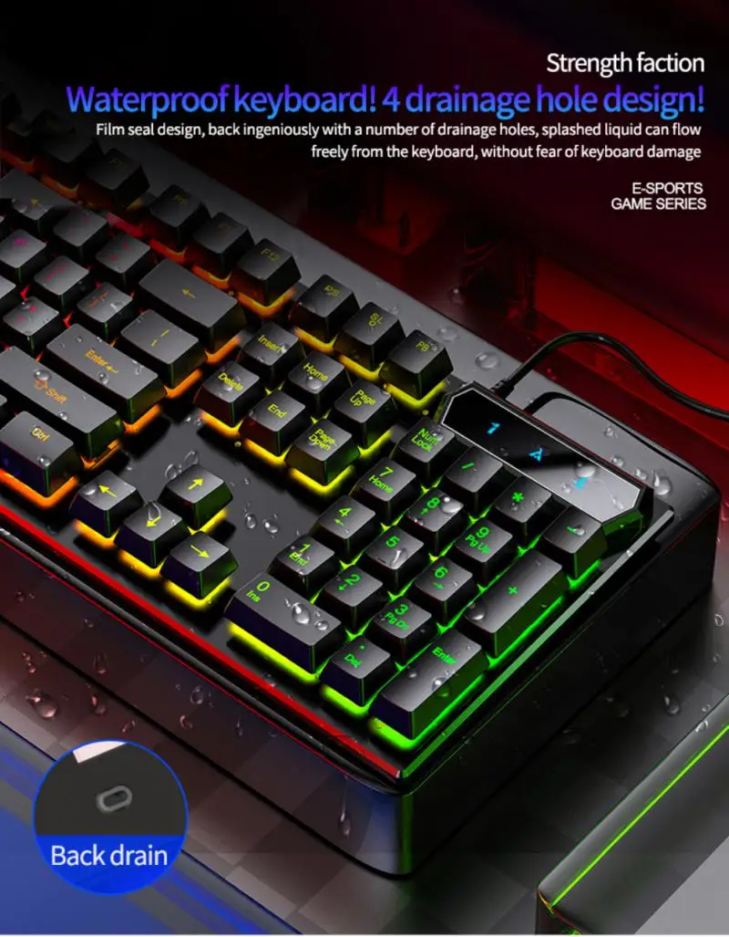 5,16 крепежных винтов полностью покрыты, что более Долговечно, чем обычные клавиатуры! Оснащен 4 дренажными отверстиями, регулируемые двойные опоры для ног, двойные Нескользящие наклейки для ног.