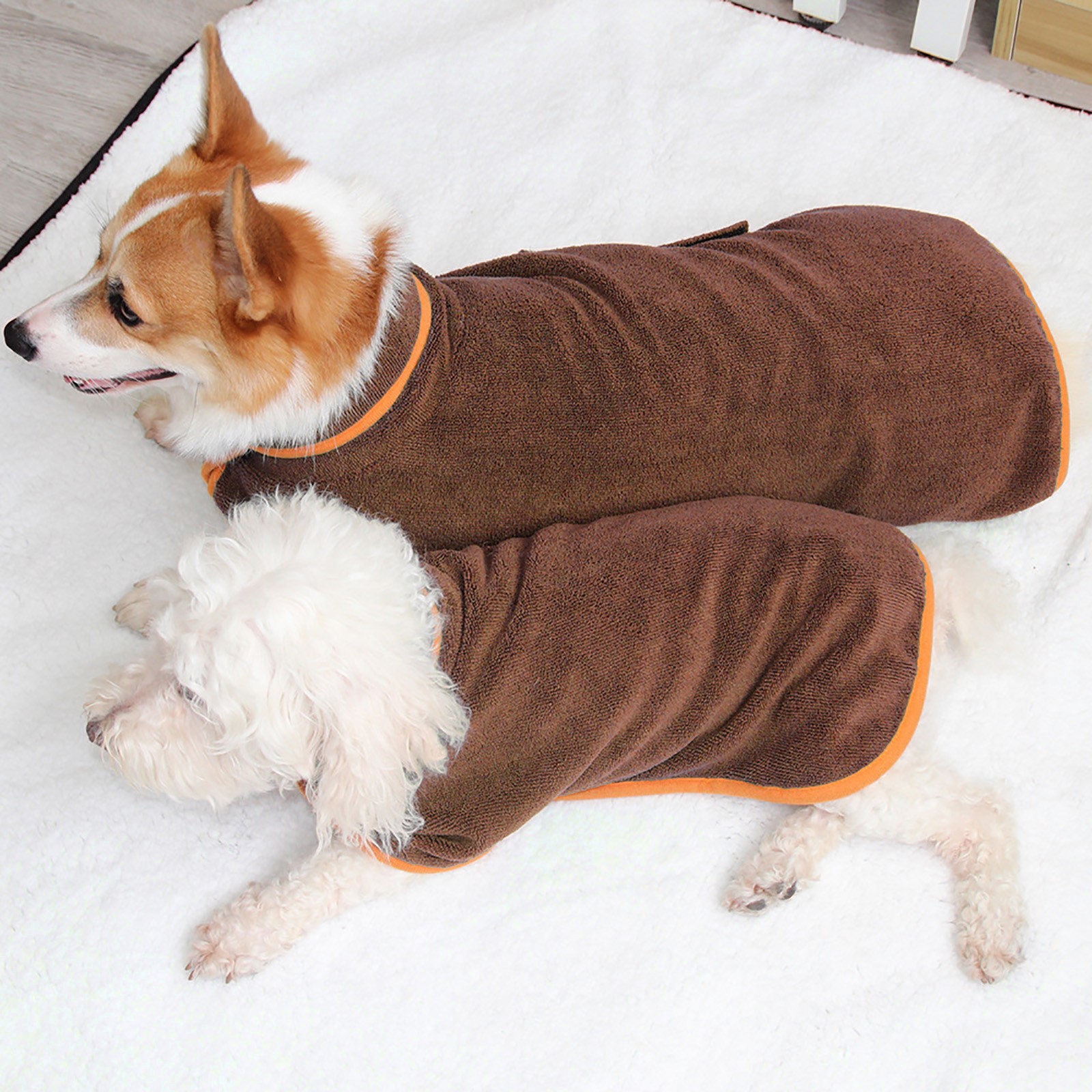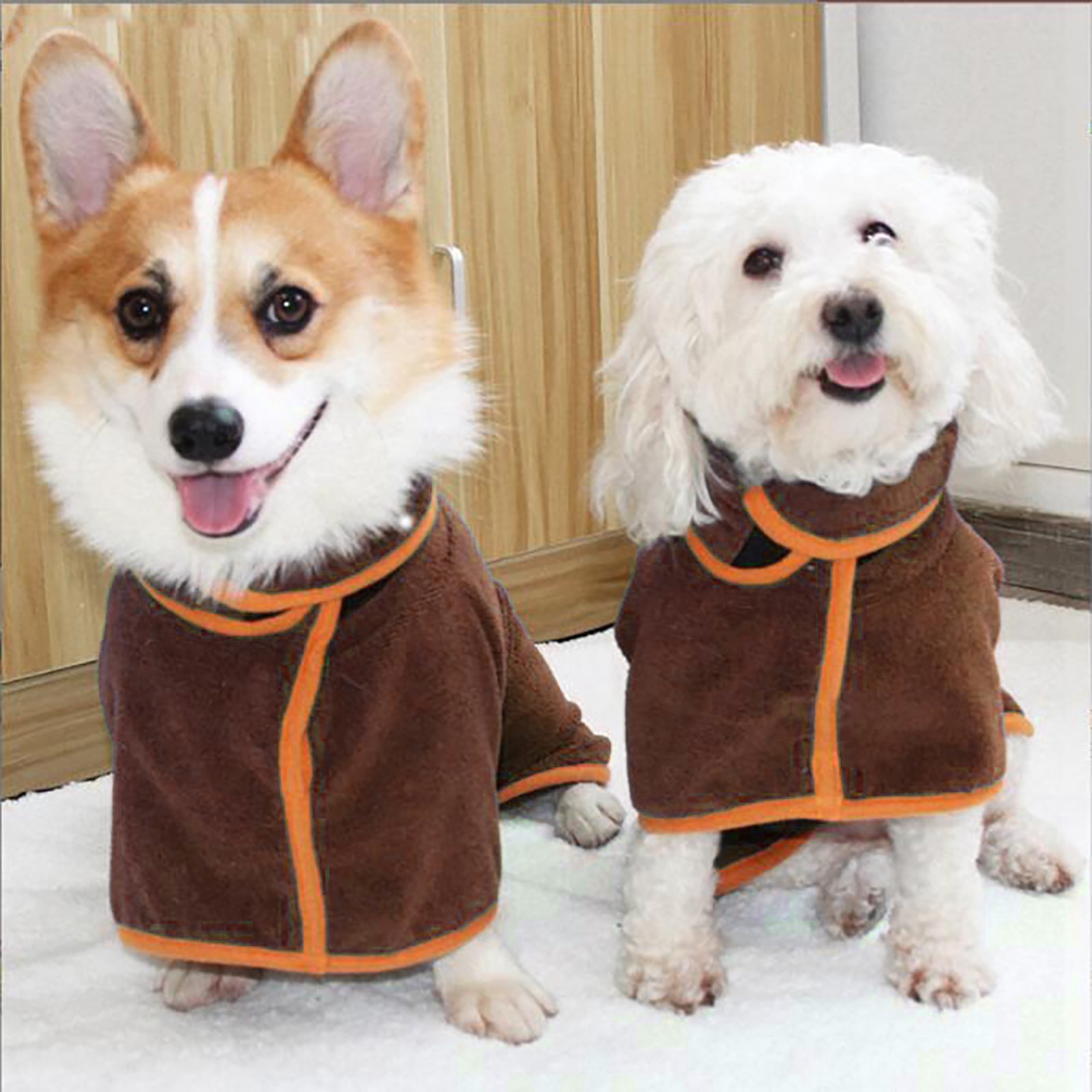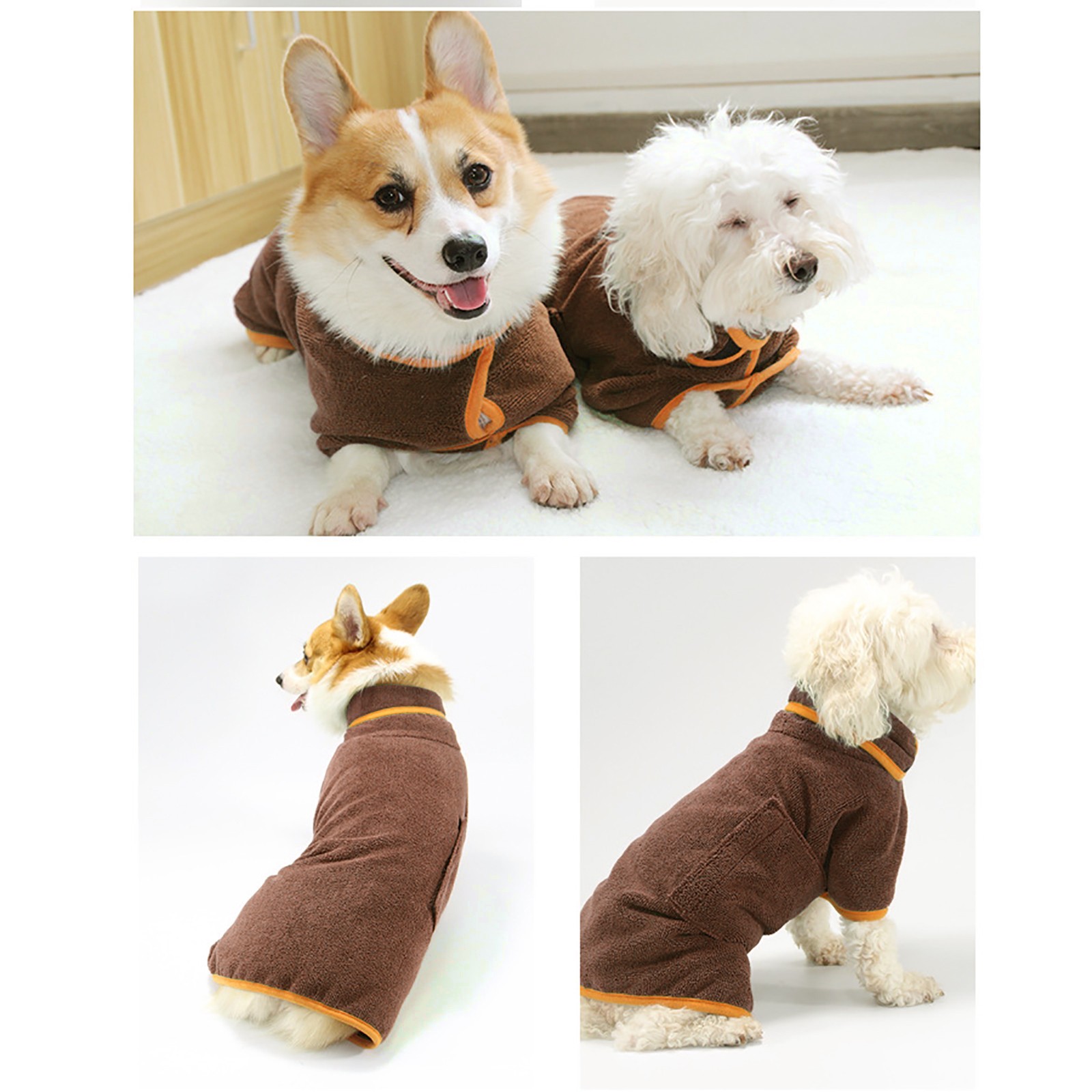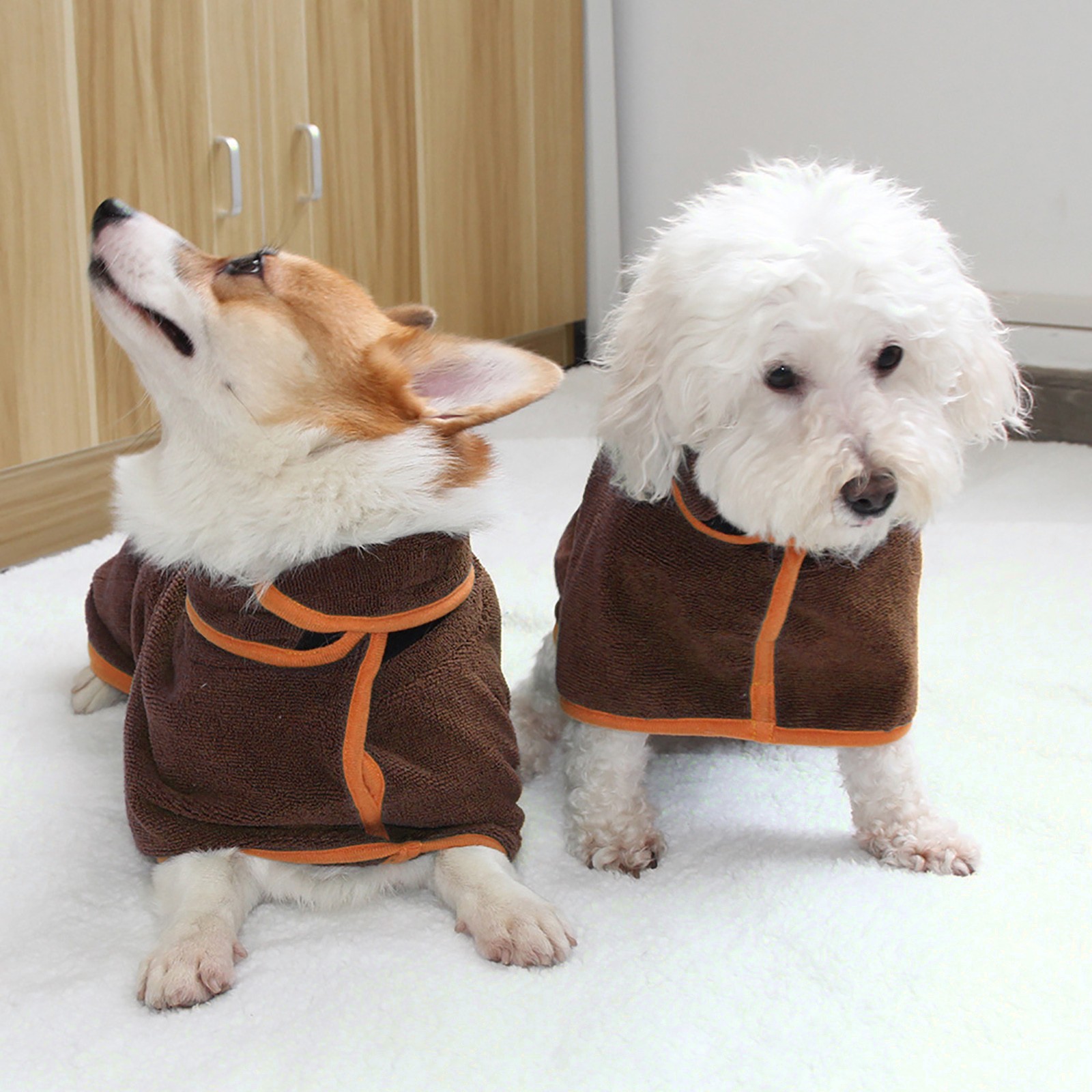 Этот халат может покрыть все тело вашего питомца. Если ваш питомец принимает участие в спектакле или промокает под дождем, пожалуйста, помогите им надеть банные халаты и быстро высушить волосы.