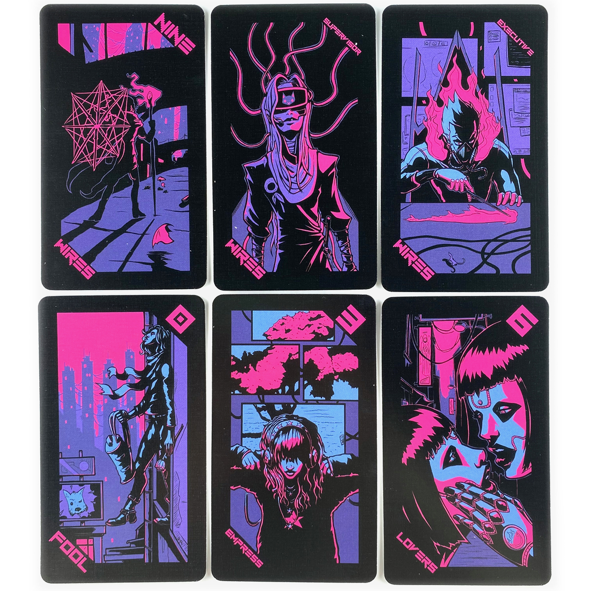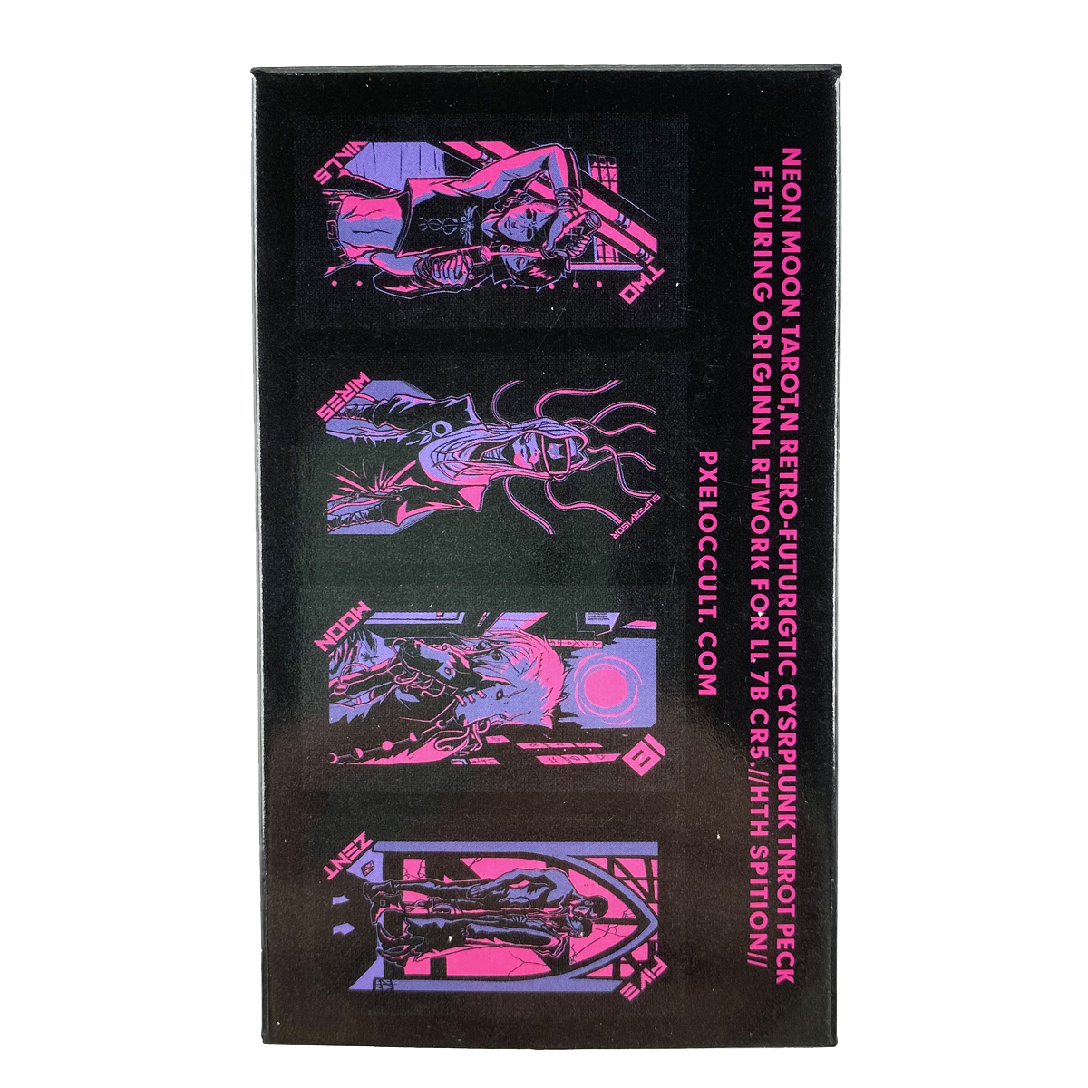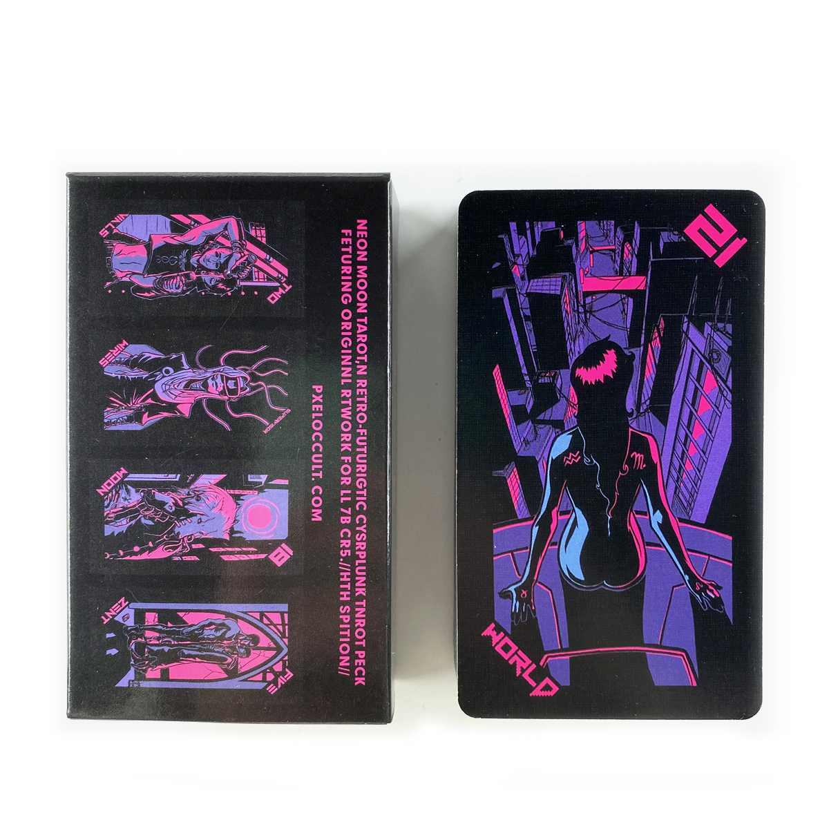 Неоновая луна-это мой Оригинальный выбор в мире cyberpunk, использующий арки Rider-Waite-Smith Tarot. Как и в любом Таро колода, каждая карта имеет кусок истории позади него, и каждая комбинация карт показывает другую историю. Персонажи в картах представляют богатых, но подавленных и сдержанных, в отличие от бедных, но разнообразных и свободных, которые борются за их наличие и идентичность против многих систем, направленных на их контроль.