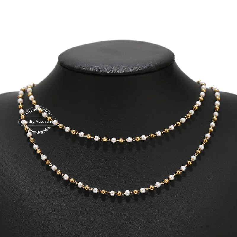 Поддельная жемчужная цепочка, Золотая шаровая цепочка из нержавеющей стали, Женская цепочка для ожерелья
