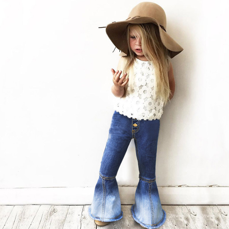 Женские джинсы с градиентом Модные Винтажные однотонные расклешенные джинсовые