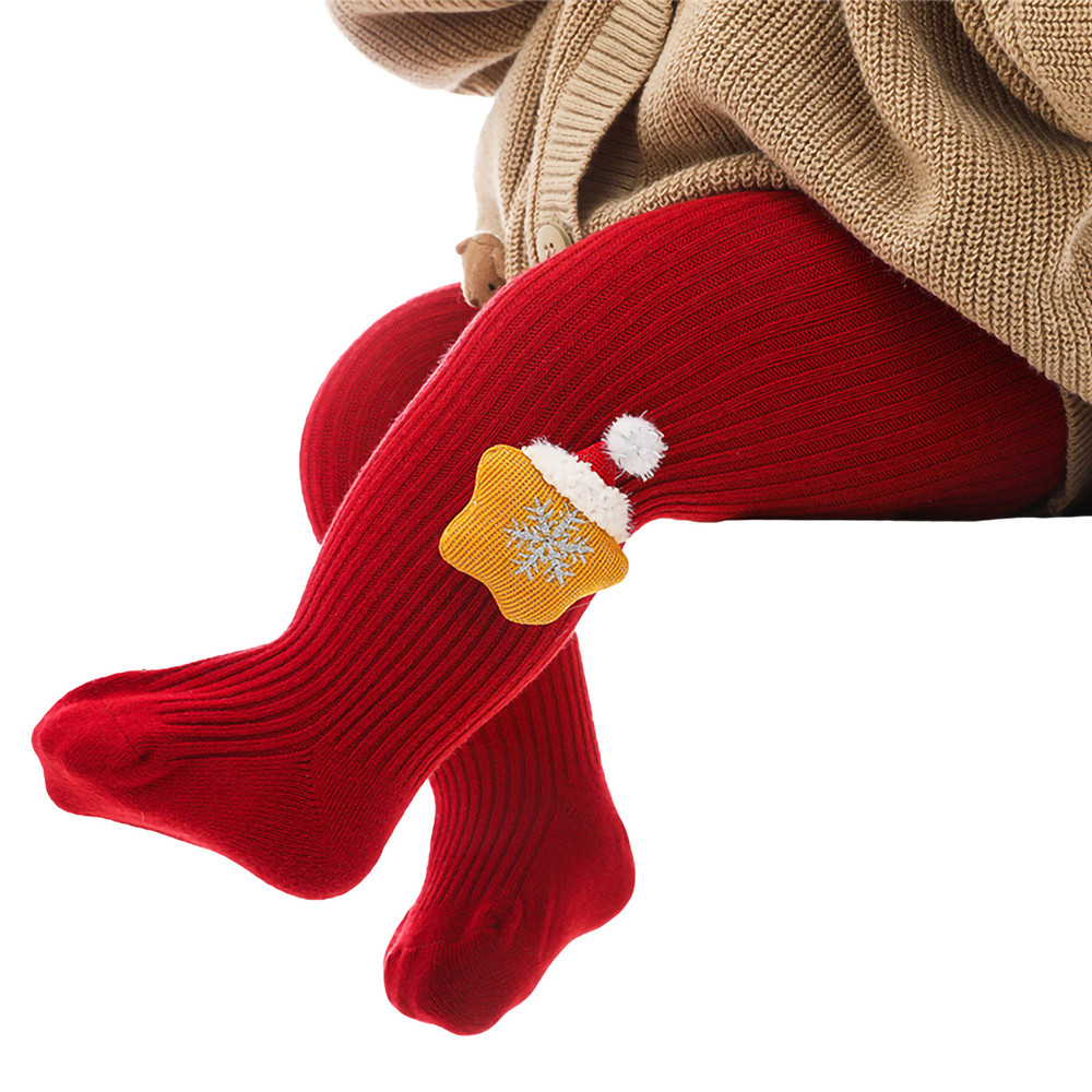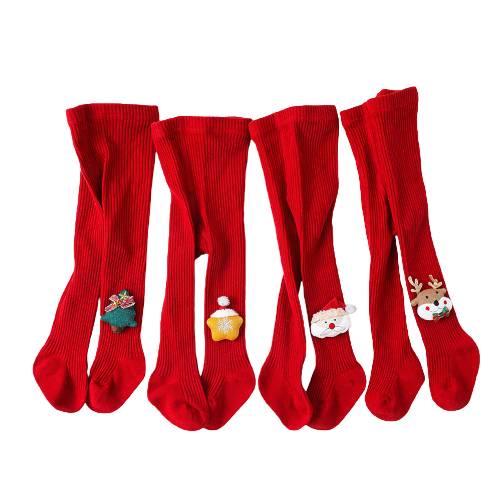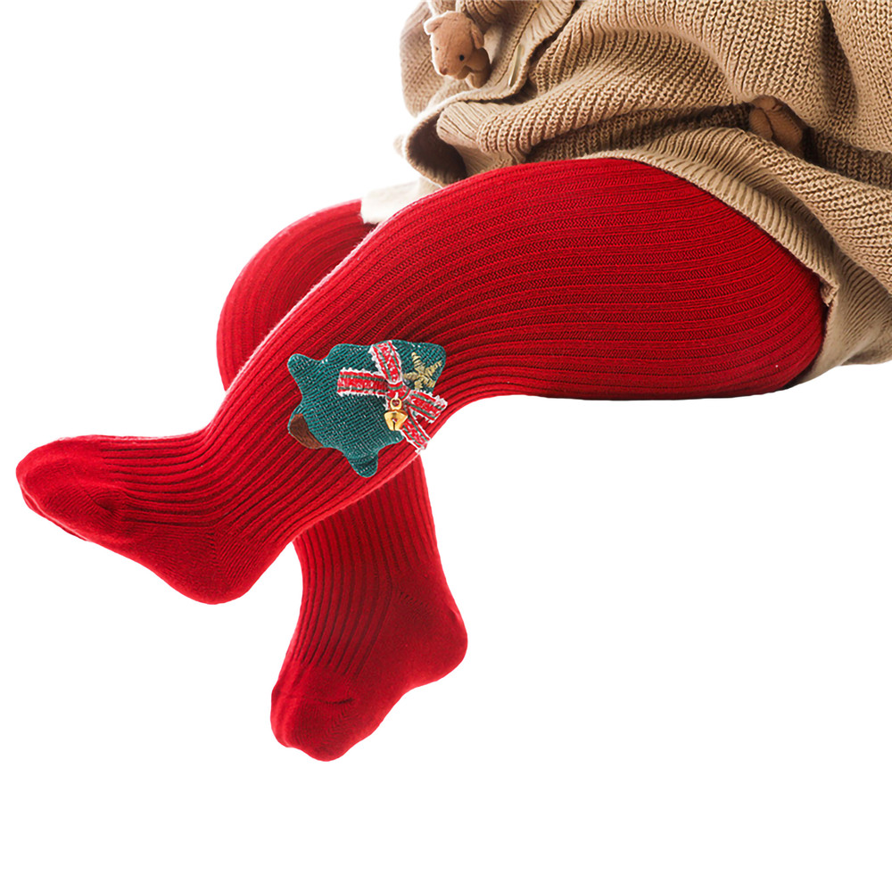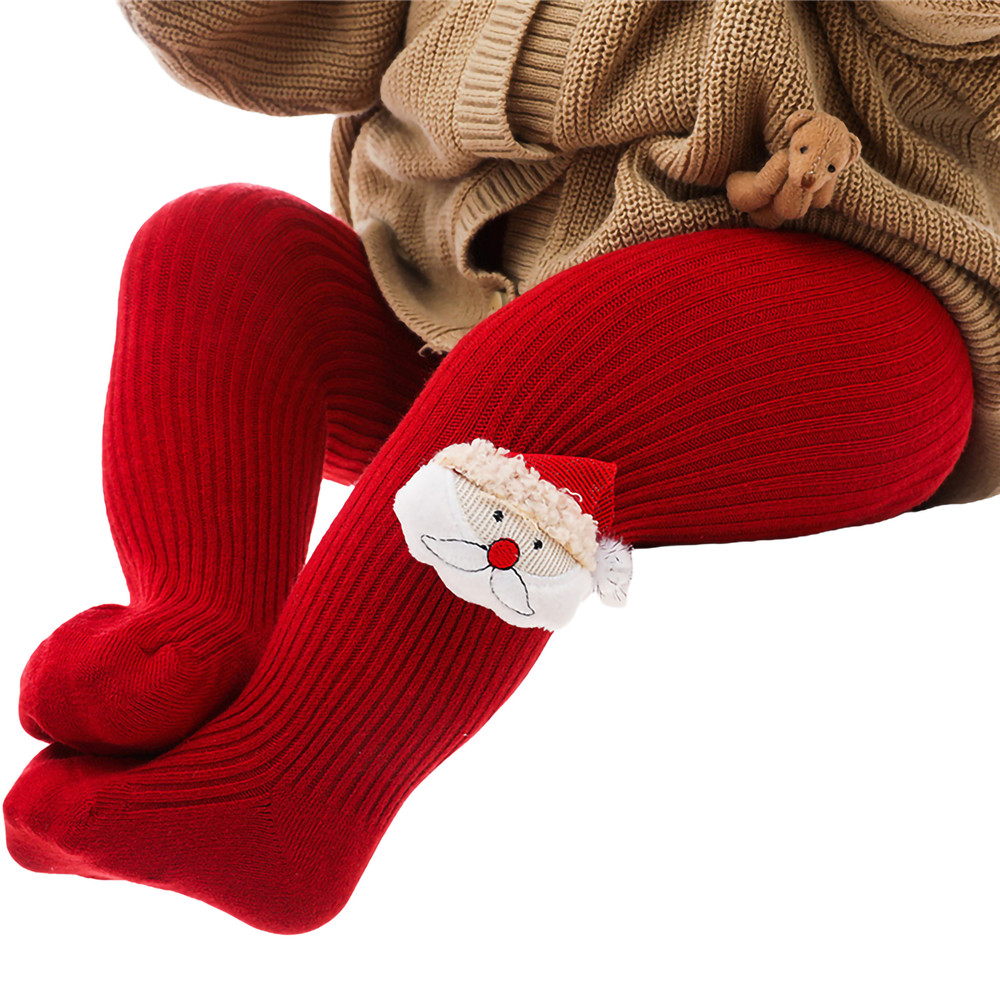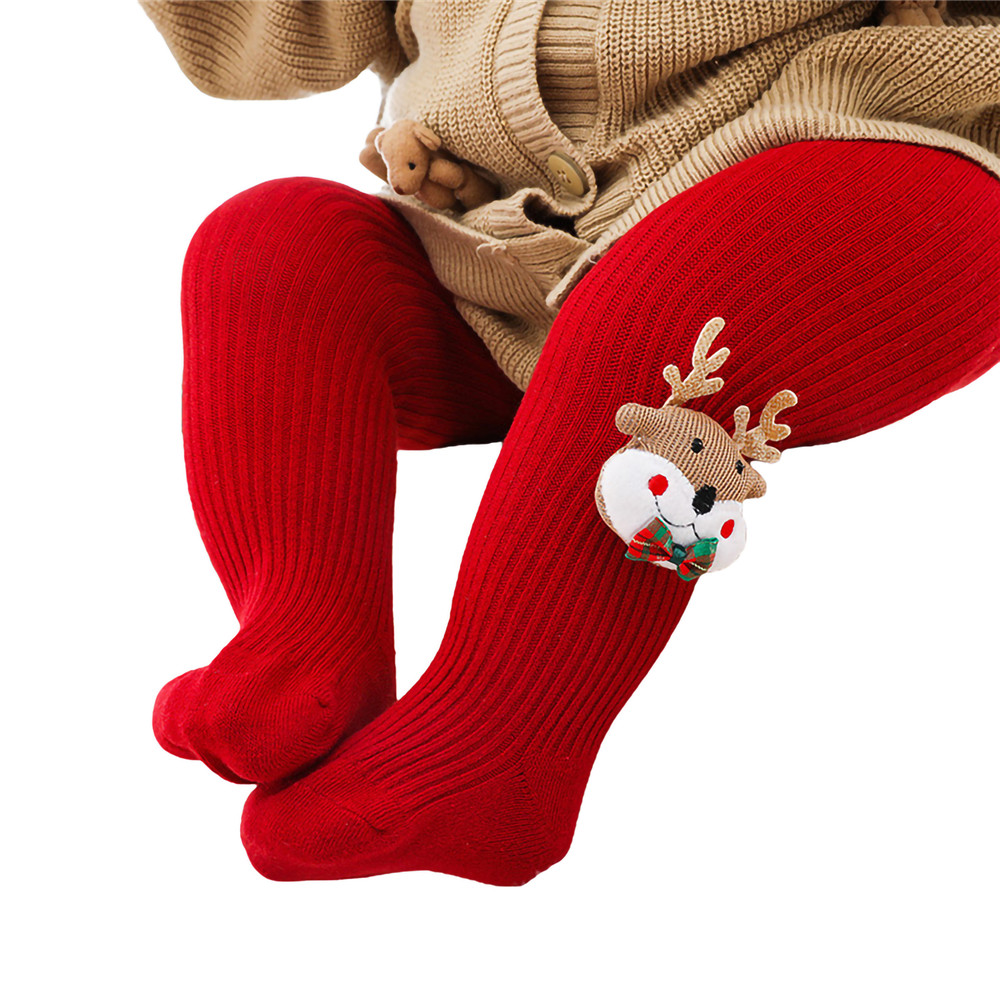 Рождественские красные колготки для маленьких девочек, Санта-Снежинка, рождественская елка, олень зимние теплые колготки, эластичные вязаные Леггинсы Новинка 2022 года