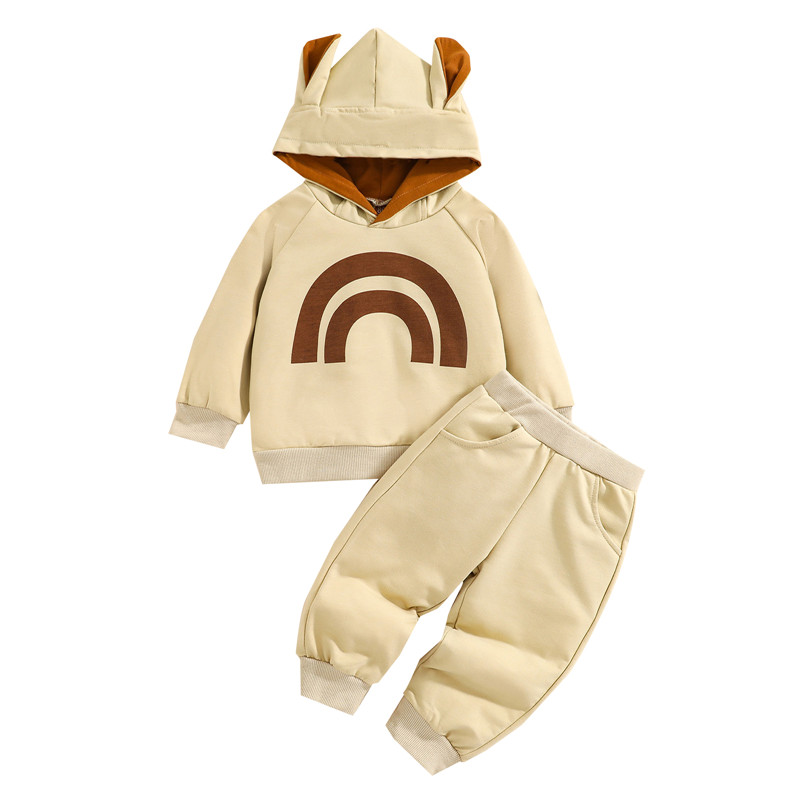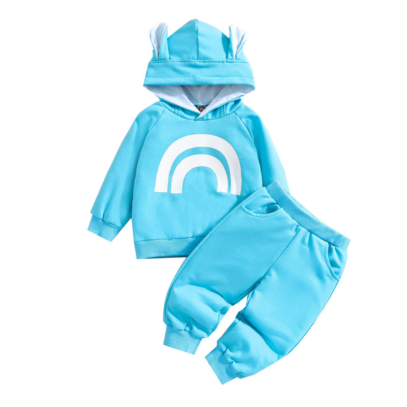 Топы с капюшоном и длинными рукавами с принтом радуги и штаны с эластичной резинкой на талии с карманами делают ваших детей милыми и теплыми.