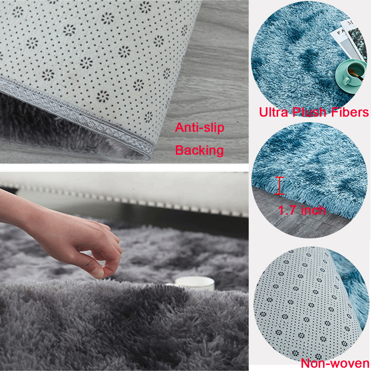 Bottom】— This shaggy rug has anti-slip design, added protection against