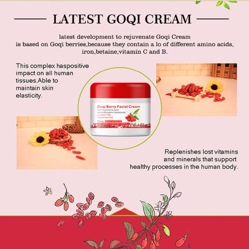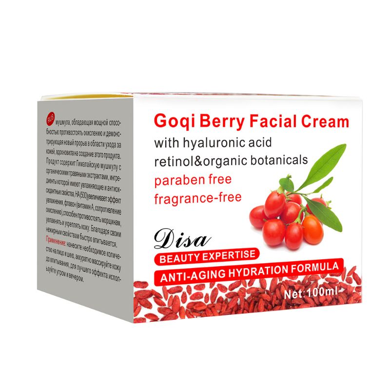 Крем для лица с ягодами Годжи сочетает в себе питательные богатые Органические Ягоды Годжи со специально подобранными ингредиентами для укрепления здоровья кожи, включая гиалуроновую кислоту и ретинол.