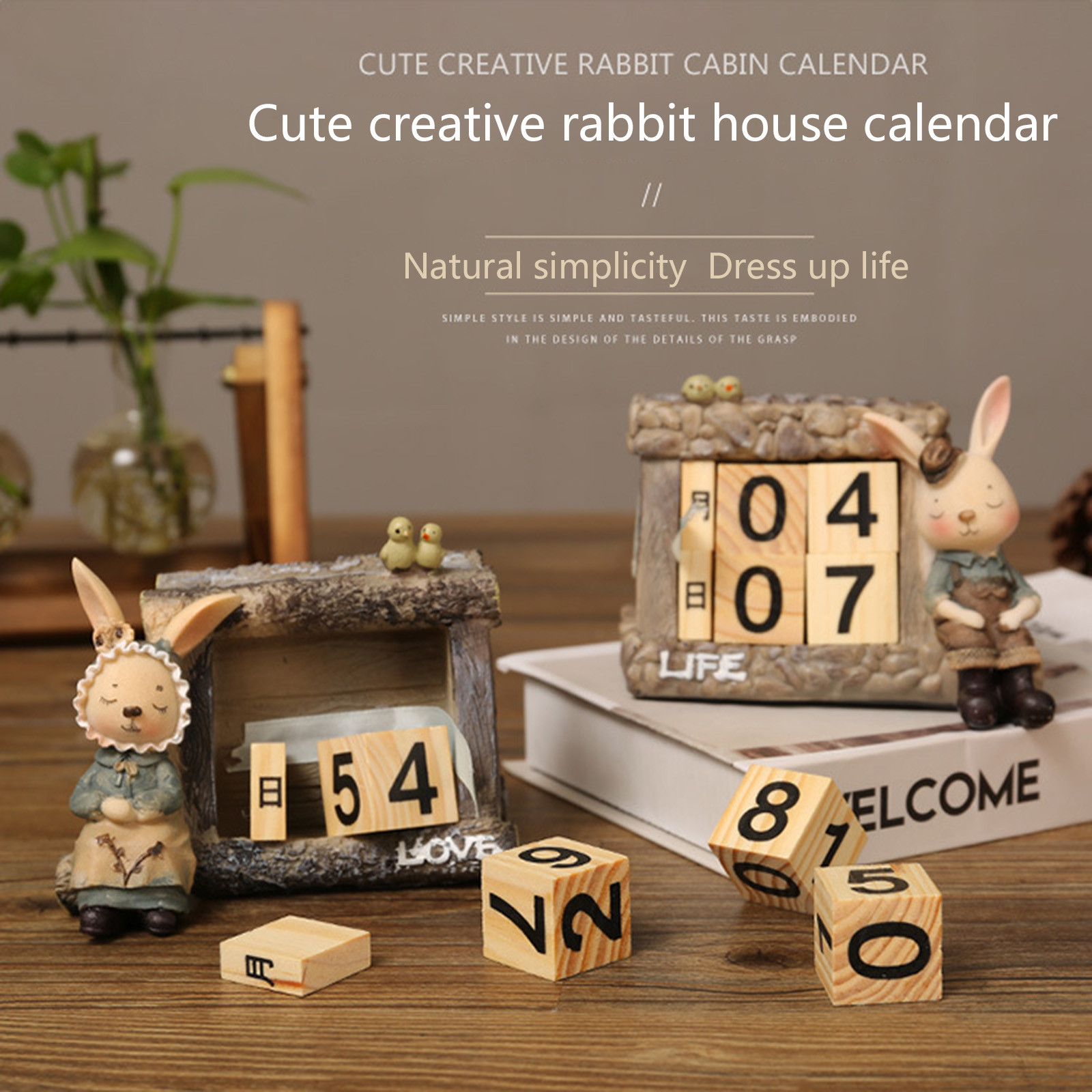 Кабина кролика Календарь деревянные блоки украшения, лучшие подарки для семьи и друзей, дома Украшение