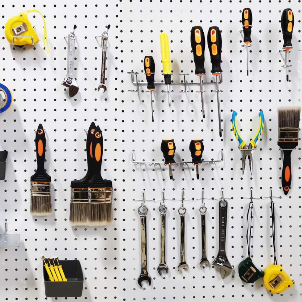 Этот крючок для хранения может предложить вам прочную конструкцию, он устойчив к ржавчине, коррозии и деформации, таким образом, его можно плотно прикрепить к доске, не отваливаясь, что позволяет легко удерживать инструменты.