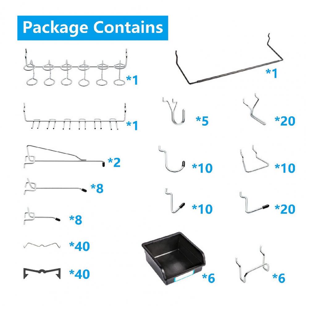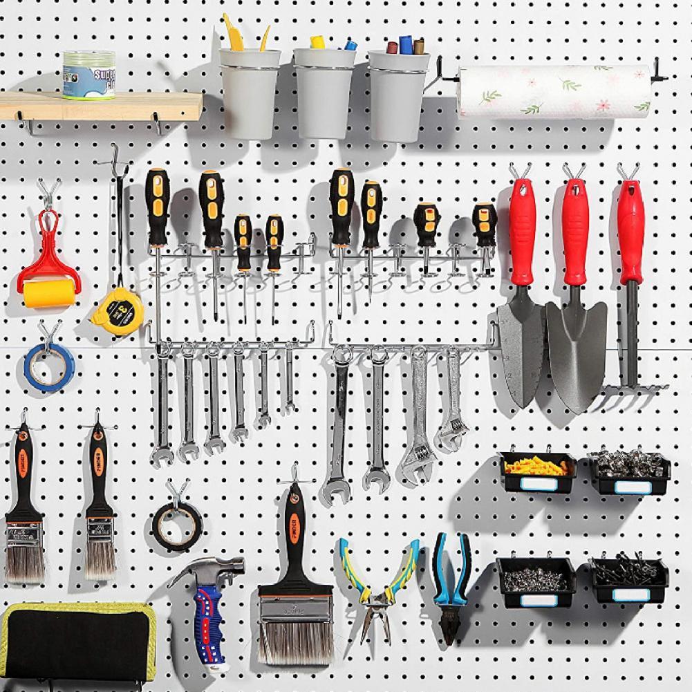 Делая верстак, стену, сарай и другие места чистыми и аккуратными, этот крючок для хранения имеет много различных типов крючков, это может помочь вам переставить колышки доски или полки, которые экономят много места.