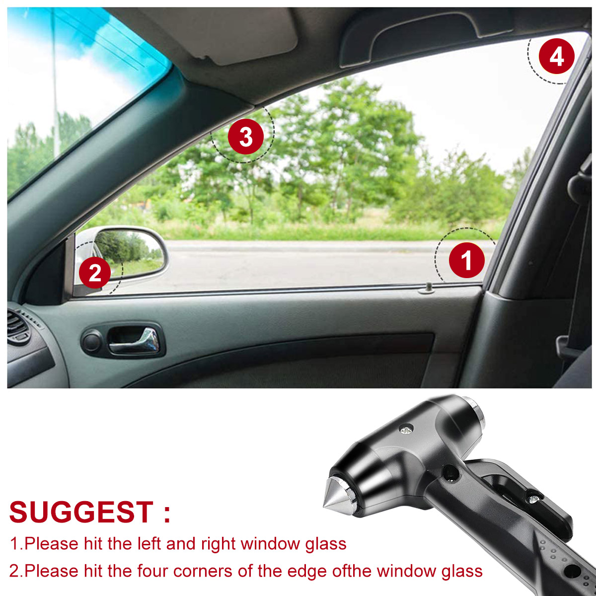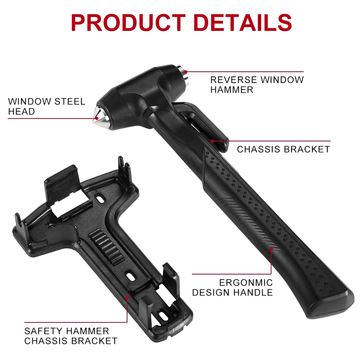 【 Sharp & practical】двухголовый молоток изготовлен из высококачественной углеродистой стали и инженерного пластика, что делает его очень острым и легко открыть окно, И режущие ремни безопасности в кратчайшие сроки.