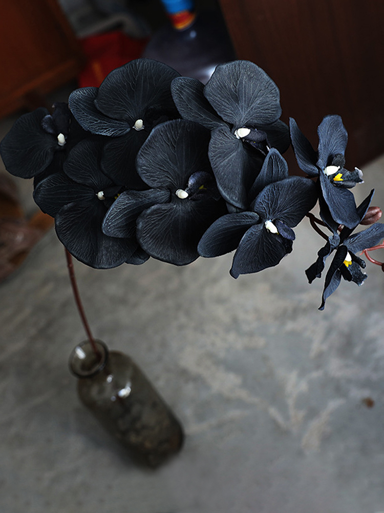 3. Материал: искусственные стебли орхидеи были изготовлены из высококачественной шелковой ткани и длинной железной проволоки. Он выглядит более реальным и более подходящим в качестве центрального элемента.