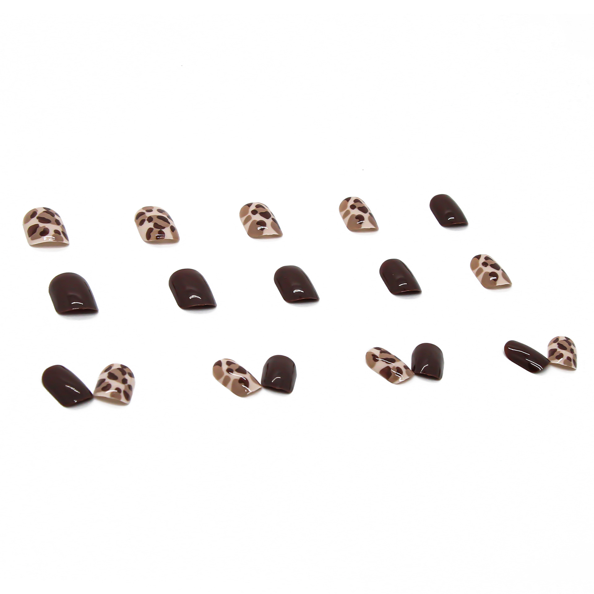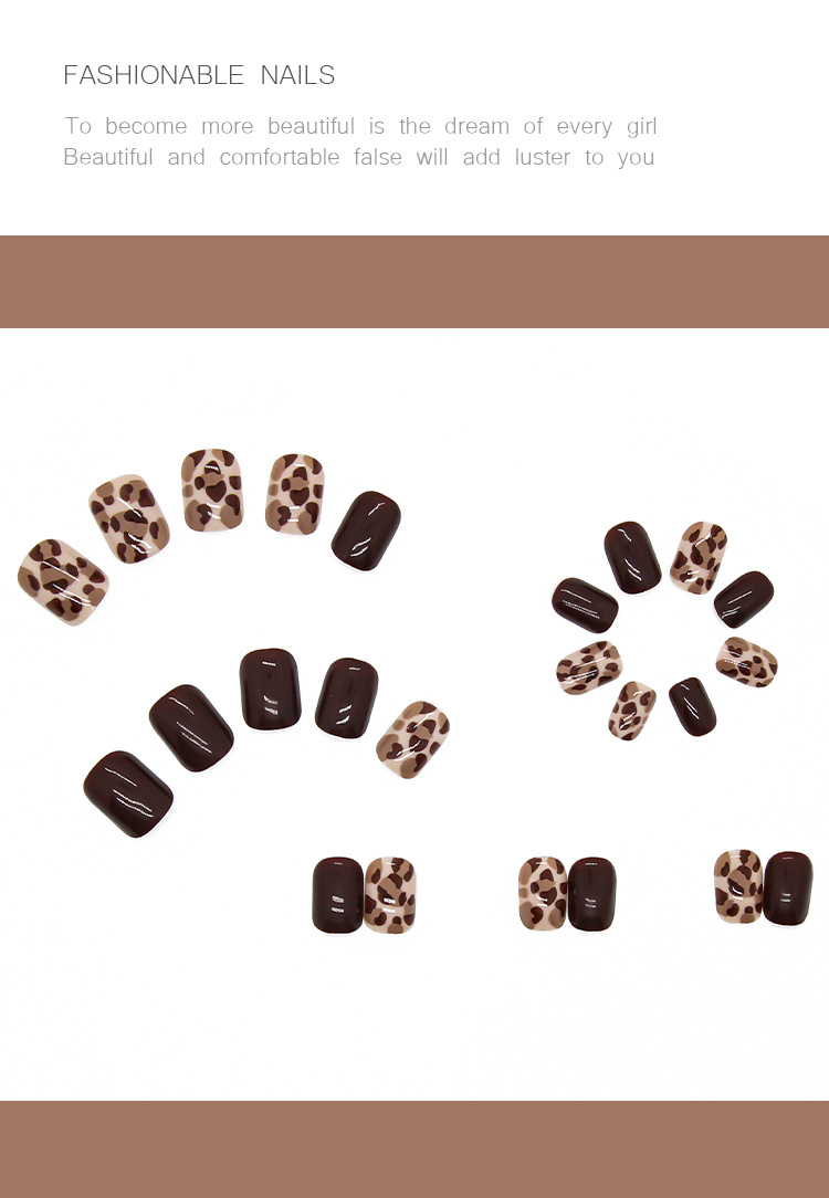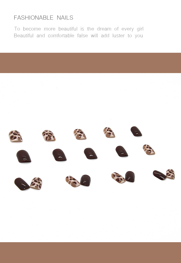 2021 24 шт коричневые леопардовые накладные ногти для девочек во французском стиле короткий пресс на ногти пригодные для носки Готовые Ногти с гелевым гелем