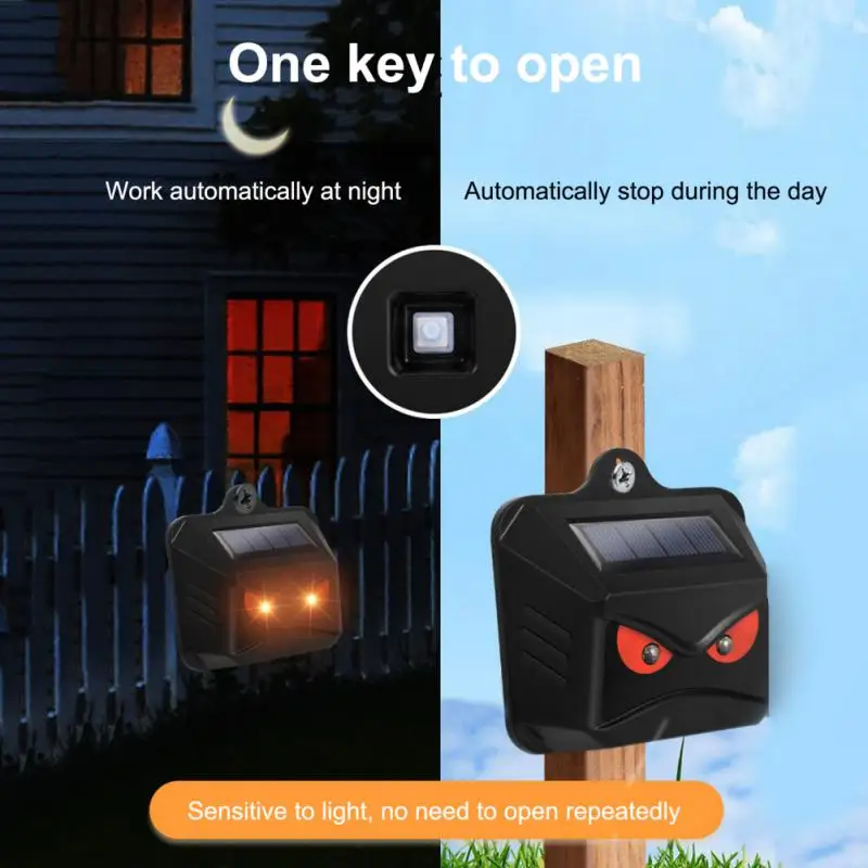 2. Водонепроницаемый дизайн солнечных огней-хищников позволяет размещать на открытом дереве, стволе, Коле, столбе, стене или других местах для предотвращения ночных животных даже в межсезонье