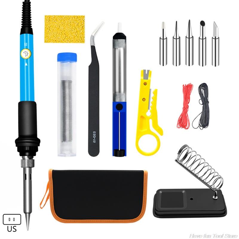 Набор паяльника 15 в 1: комплект электронного паяльника оснащен паяльником, подставкой для паяльника, 5 наконечниками паяльника, проводами для пайки, полосками проводов, припоями, пинцетами, электронные провода и Портативная сумка для переноски. Полный набор инструментов для удовлетворения ваших потребностей в сварке.