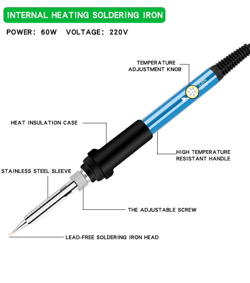 Эргономичная ручка: эргономичная высокотермостойкая паяльная ручка, светильник по весу, не будет чувствовать усталость при работе под разными углами и удобнее держать.