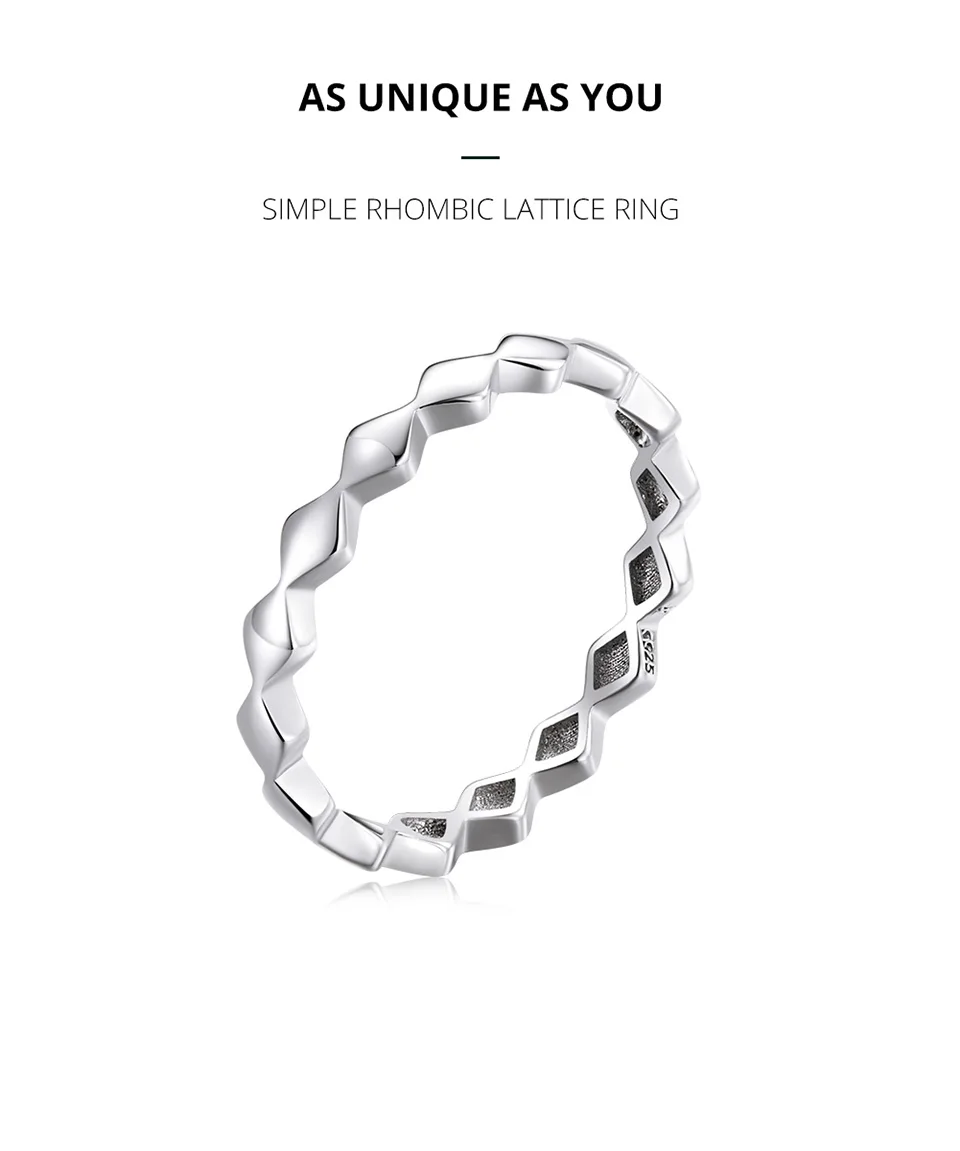 Bamoer, новинка, простые кольца с ромбической решеткой для женщин, Настоящее серебро 925 пробы, кубические кольца на палец, модные ювелирные изделия, аксессуары