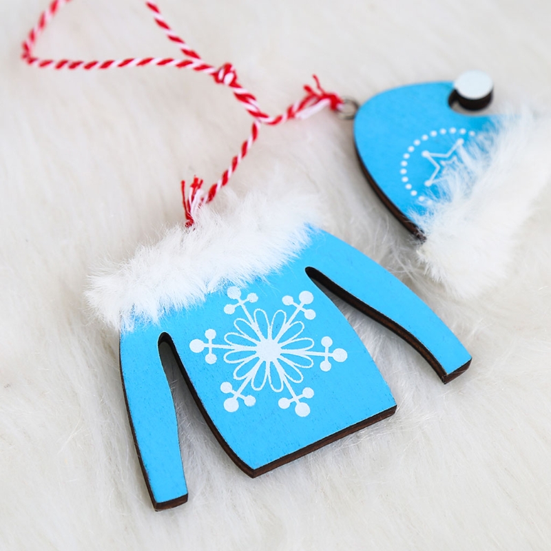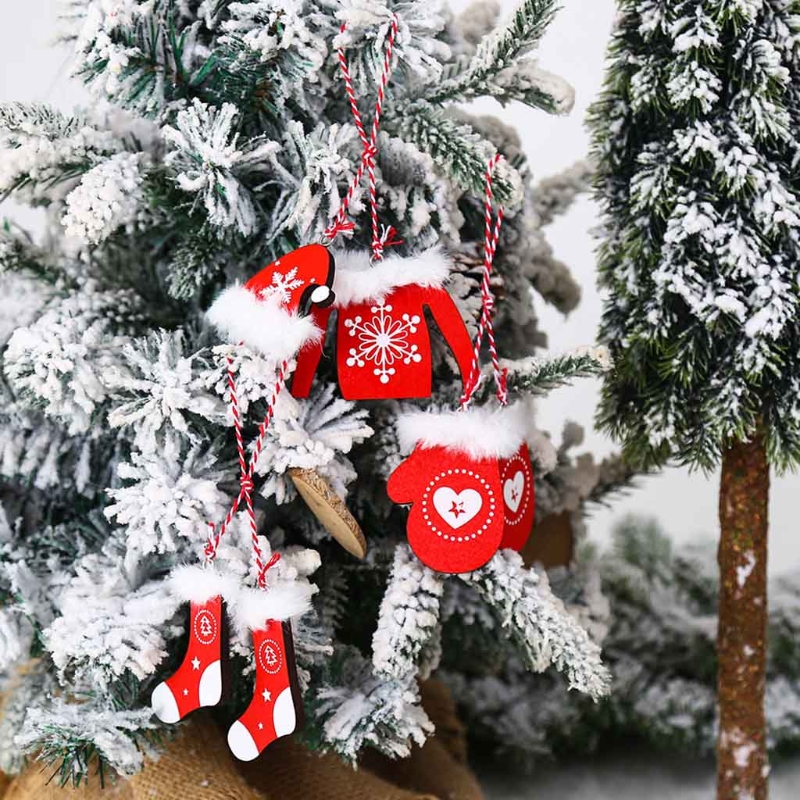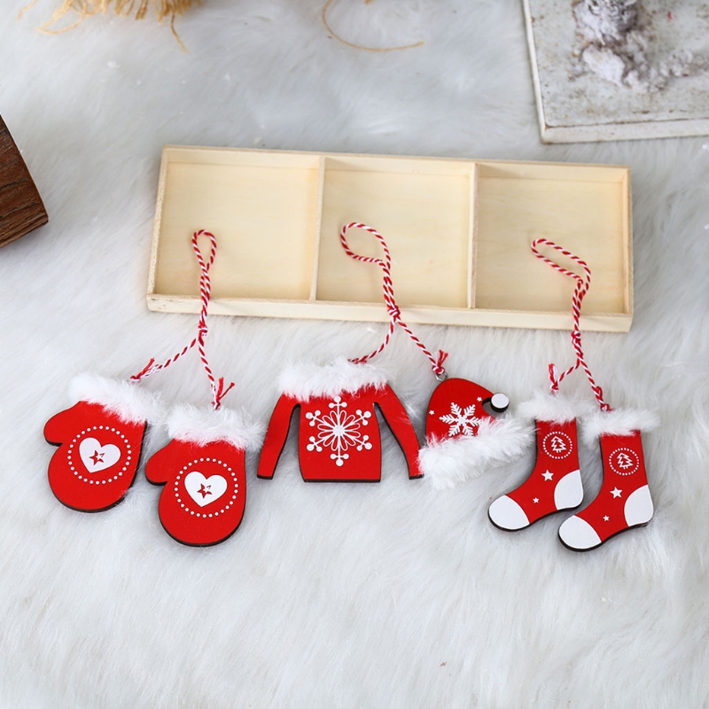 41XB 6 штук Рождественская елка бирка кулон персонализированный чулок шляпа пальто перчатки деревянные Тэги деревенский Рождество висячая бирка для рождественской елки