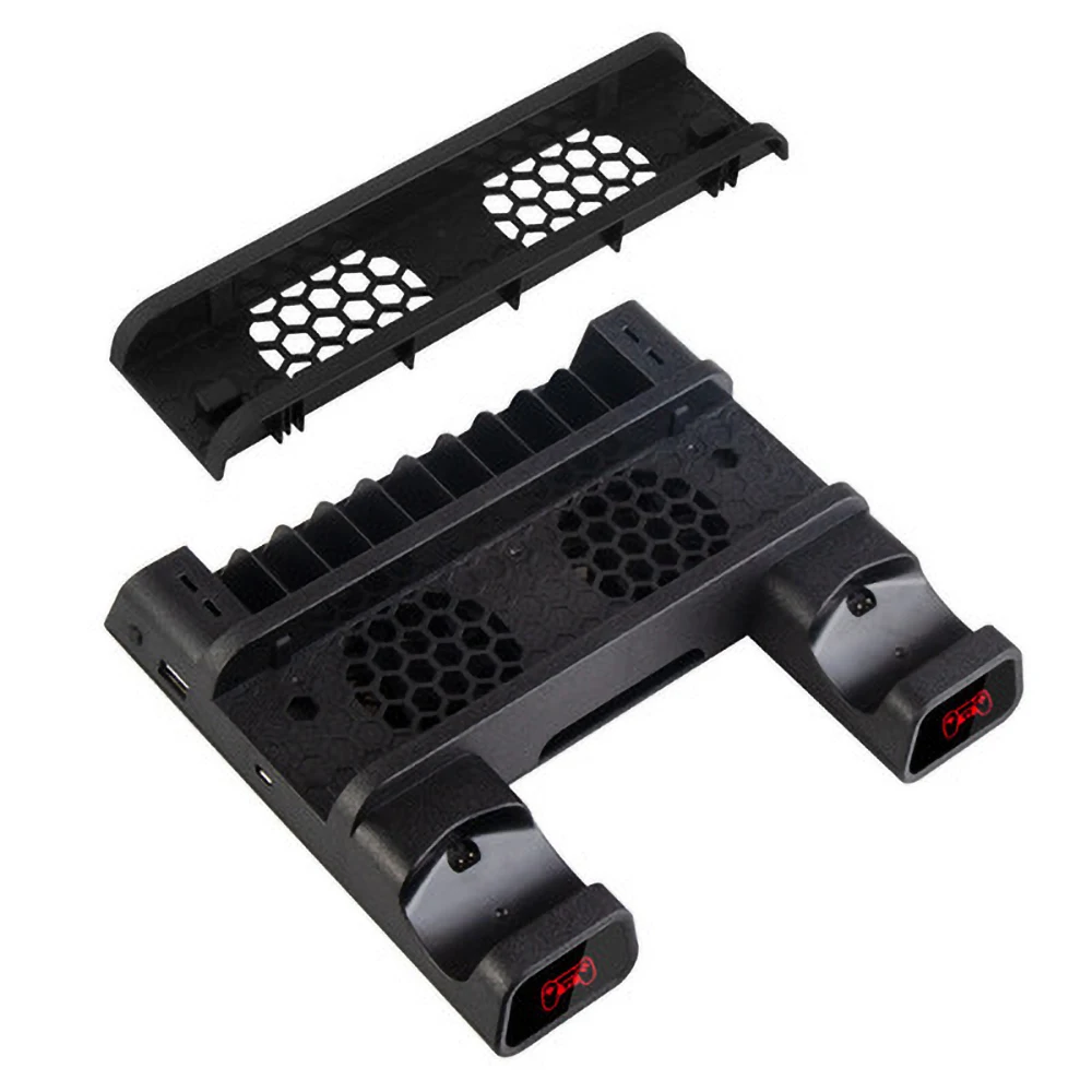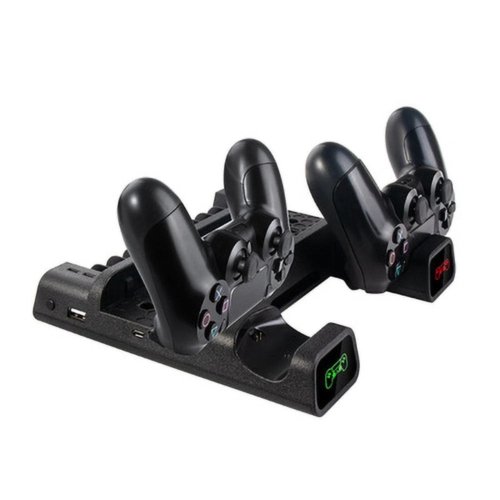 Характеристики:<;br/> Этот продукт совместим с консолью PS4, PS4 Slim и PS4 Pro.<;br/> два встроенных высокоскоростных вентилятора для ускорения воздуха внутри консоли PS4<;br/> для охлаждения.<;br/> Питание от usb-портов PS4, без дополнительного адаптера, зарядка двух контроллеров PS4<;br/> одновременно <;br/> противоскользящая ЭВА с двух сторон, чтобы избежать царапин и скольжения <;br/>PS4, PS4 Slim или PS4 Pro консоль <;br/>PS4 вертикальная подставка, поместите ее аксессуары на док-станцию, затем она может быть <;br/> совместима с PS4 Slim<;br/> Если вы не используете тонкую вертикальную подставку, док-станция может быть совместима <;br/> с хостом PS4 или PS4 Pro <;br/> Спецификация:<;br/> Питание: USB 5 В (Подключите прилагаемый usb-кабель к консоли)<;br/> Ток: Максимальный ток для индивидуального контроллера может достигать 800 мА, когда <;br/> контроллер PS4 заряжается, средний ток составляет 400 мА, когда два <;br/> контроллерах зарядки (Нет вентилятора работает)<;br/> Макс скорость вращения вентилятора: 5000 ± 10% PRM, Макс выход воздуха: 12,6 CFM.<;br/> Время зарядки: 2,5-3 часа (два контроллера зарядки одновременно)<;br/> Продукт Основной Материал: АБС-пластик, <;br/> Аксессуары: USB кабеля <;br/> бренд продукта: DOBE<;br/> Название продукта: TP4-19076 зарядное устройство <;br/> характеристики продукта: 200*50*235 мм <;br/> Количество зарядки: 2<;br/> Напряжение продукта: 5 В <;br/> упаковочный лист <;br/>1 * Подставка для зарядки охлаждения <;br/>1 * USB кабель передачи данных <;br/>1 * Инструкция <;br/>4 * контактный интерфейс ручки