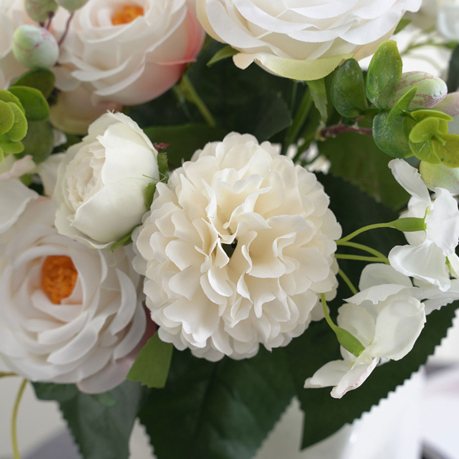 2. Подходящий Размер: длина около 32,5 см с 3 розами + 2 хризантемами + 2 цветочными бутонами + 6 ягод + несколько листьев растений для воды, подходит для большинства ВАЗ, это проще для вас, чтобы украсить и использовать в нашей повседневной жизни.