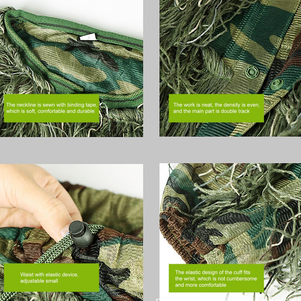 Сочетание 3D-дизайна листьев и камуфляжной печати в наибольшей степени похоже на естественную лесную местность, позволяя вам скрывать и скрывать, дикую жизнь фотографии, наблюдение за птицами, игры на открытом воздухе без помех.