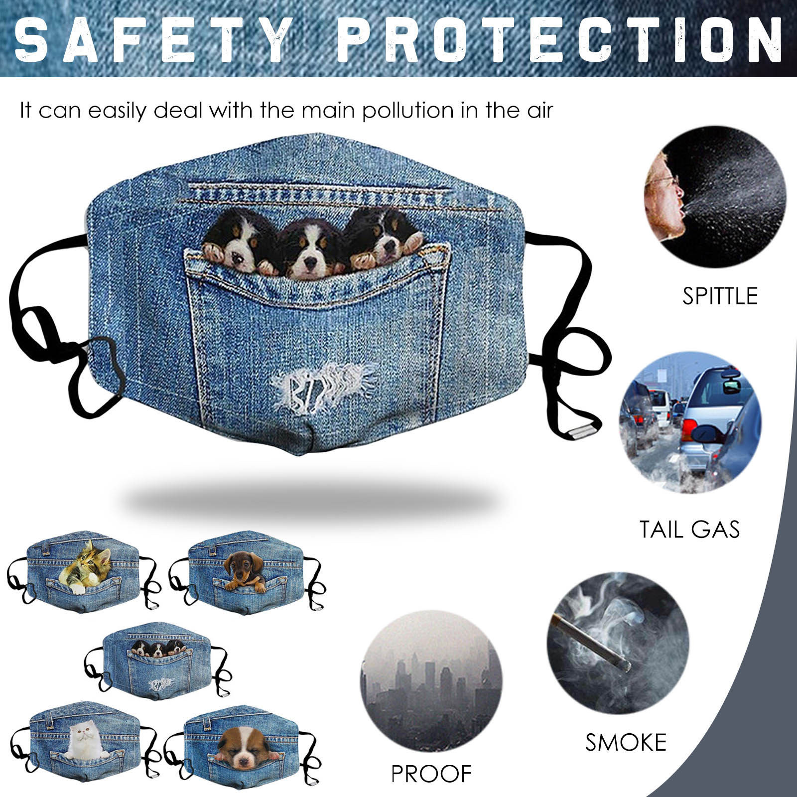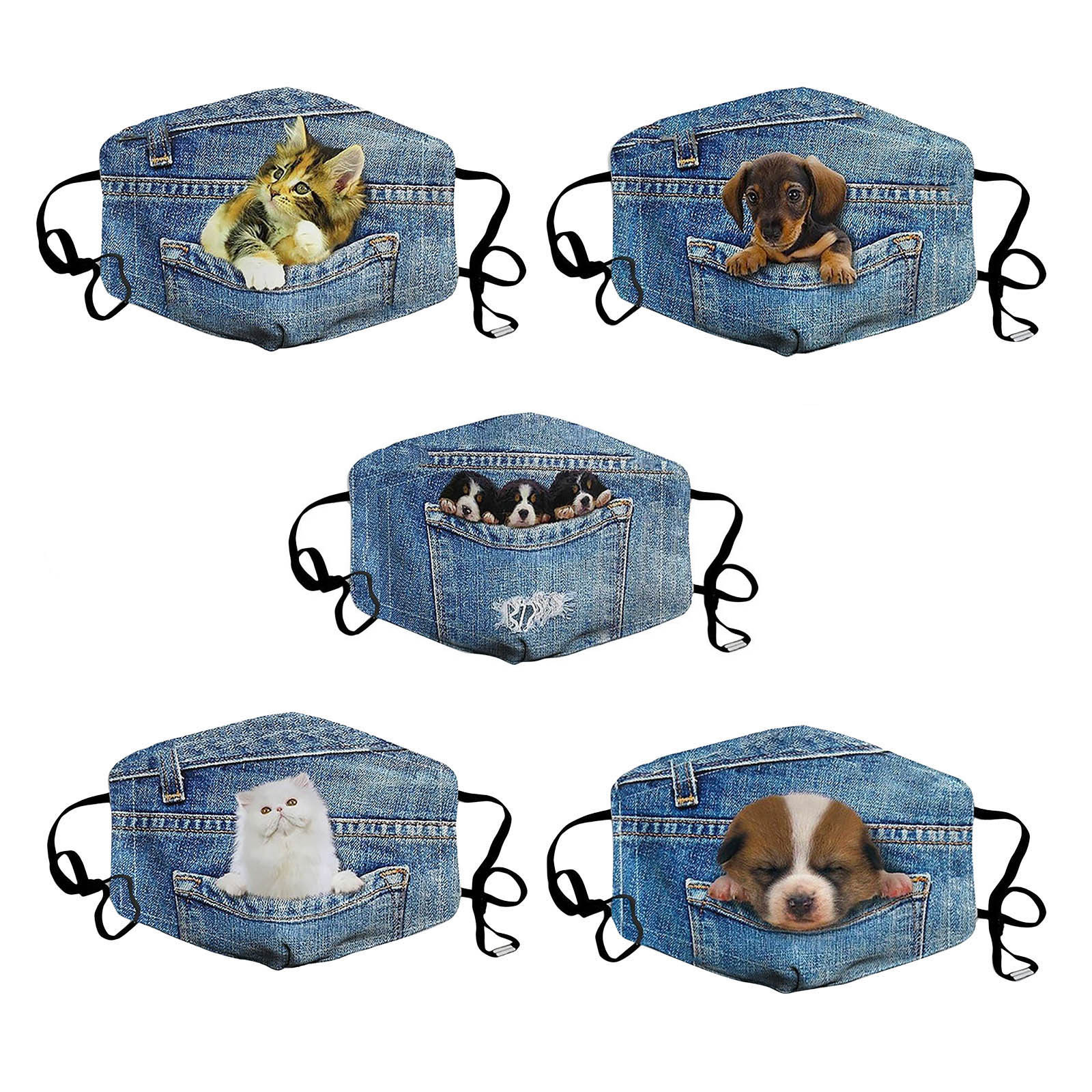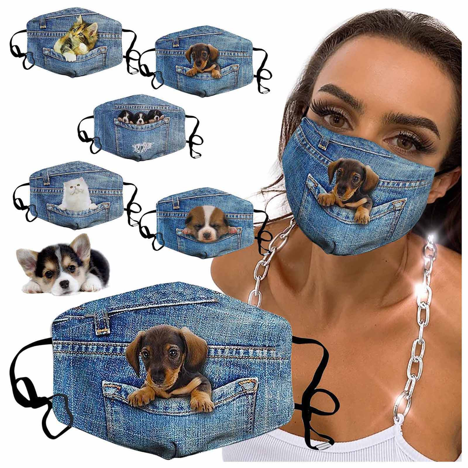 Джинсовая маска для лица с изображением кота и собаки, модная маска из хлопчатобумажной ткани для взрослых PM2.5