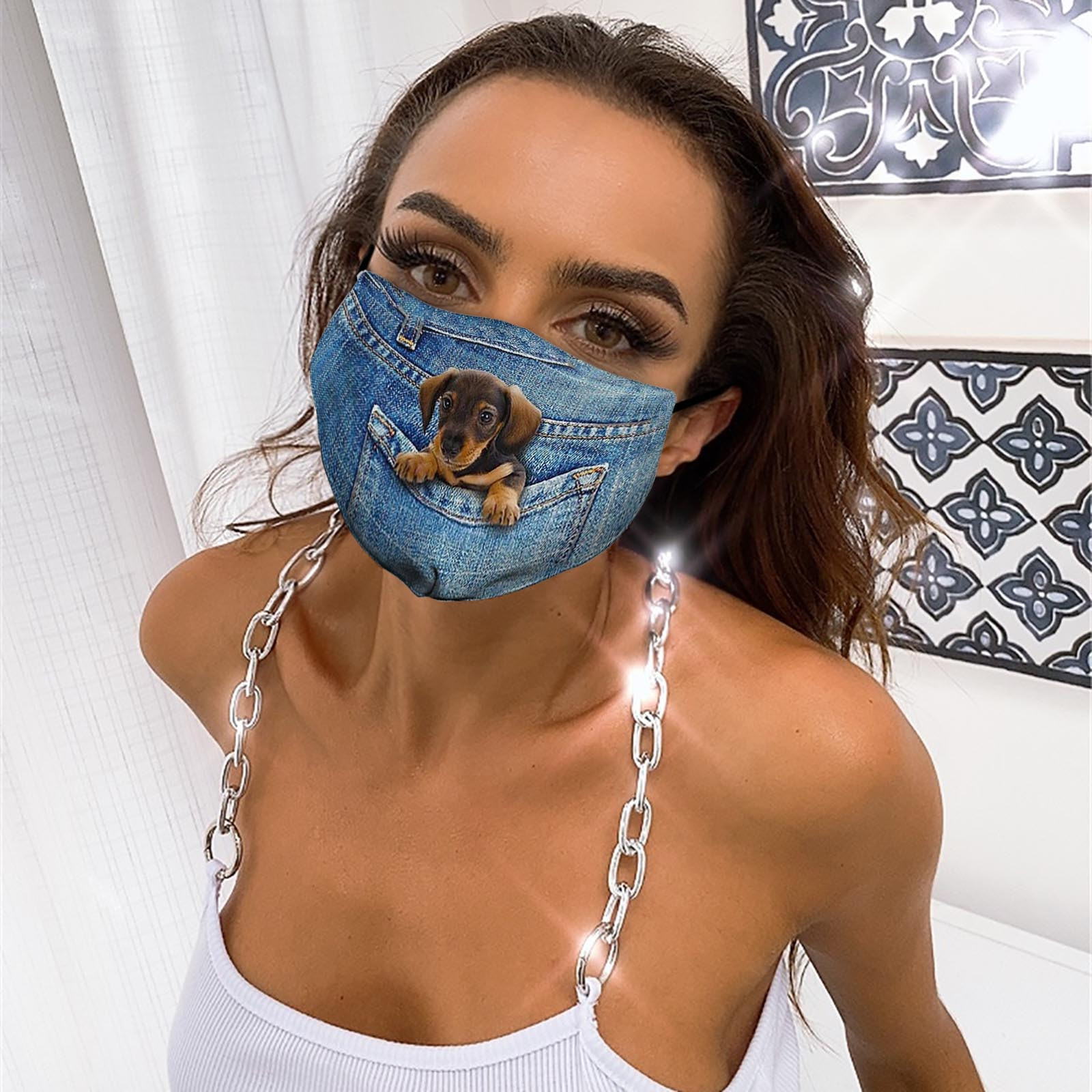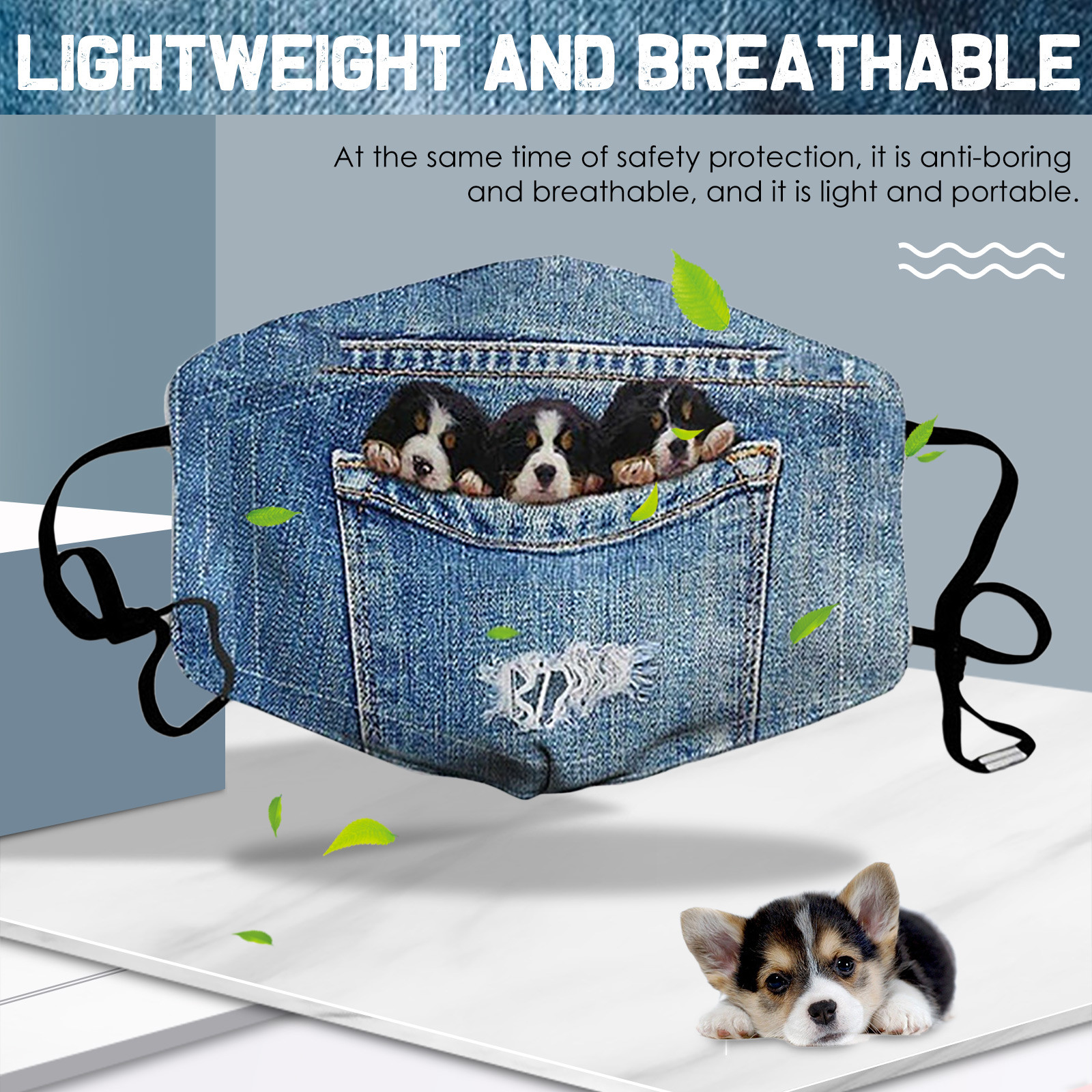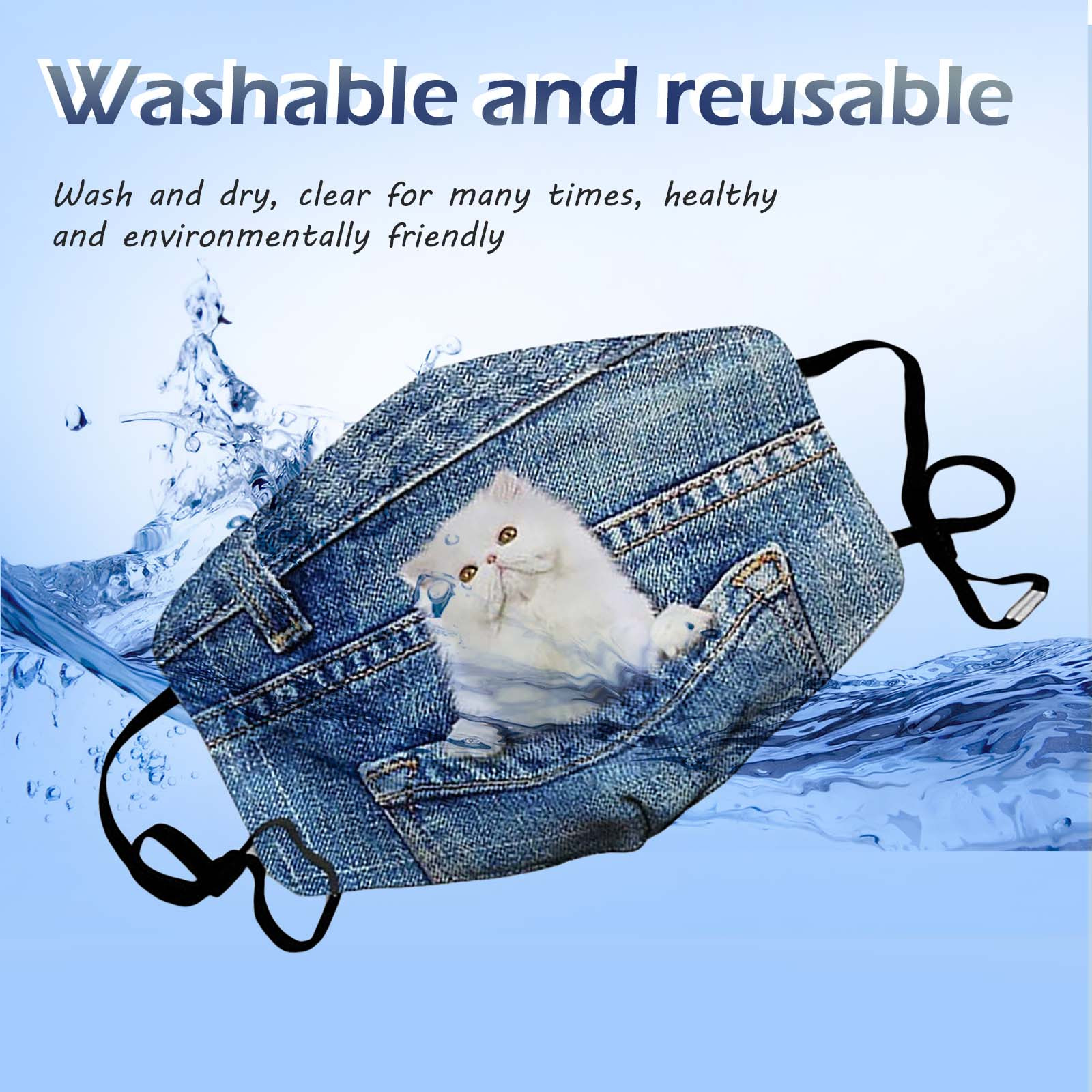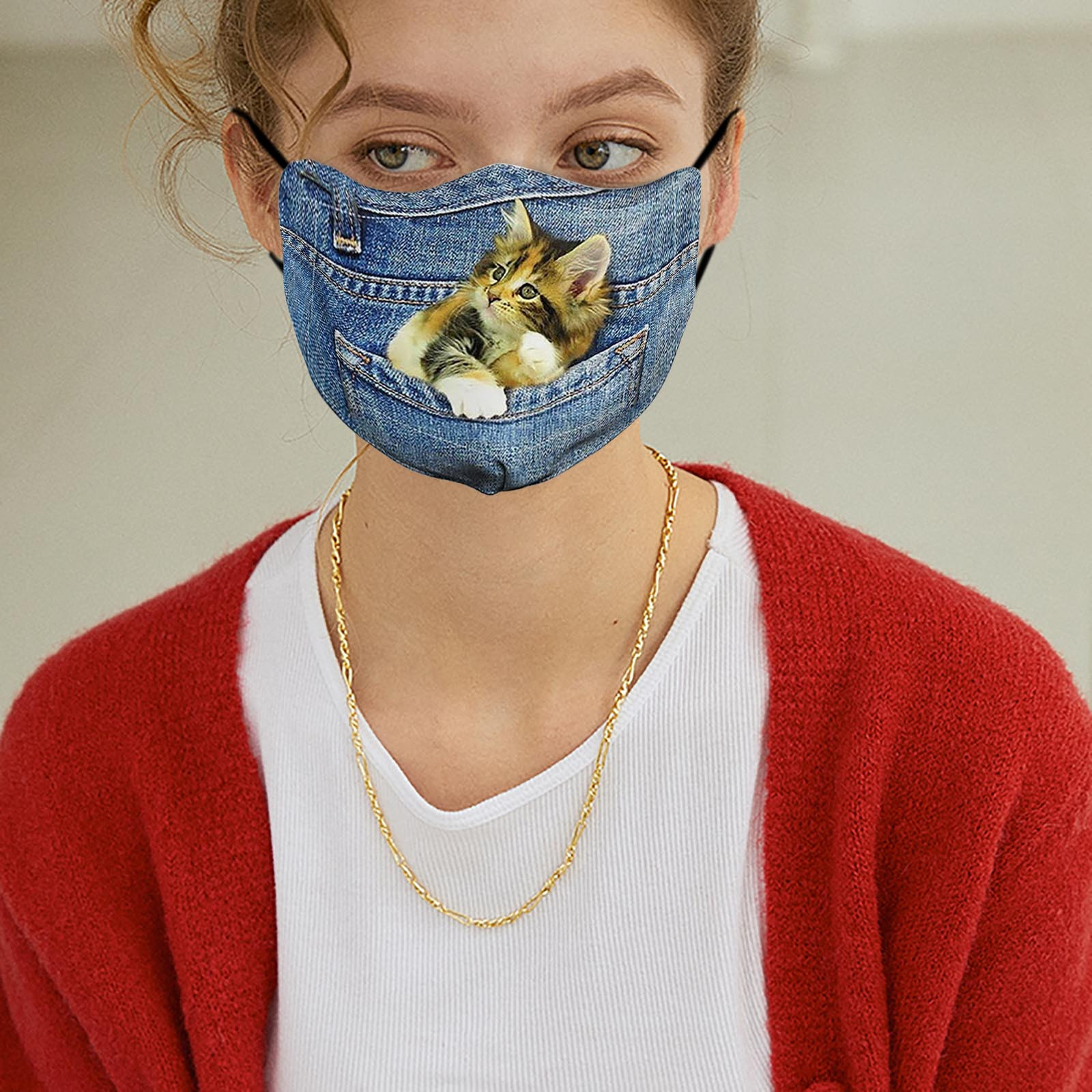 Джинсовая маска для лица с изображением кота и собаки, модная маска из хлопчатобумажной ткани для взрослых PM2.5