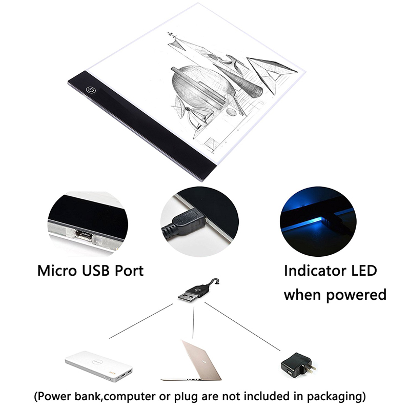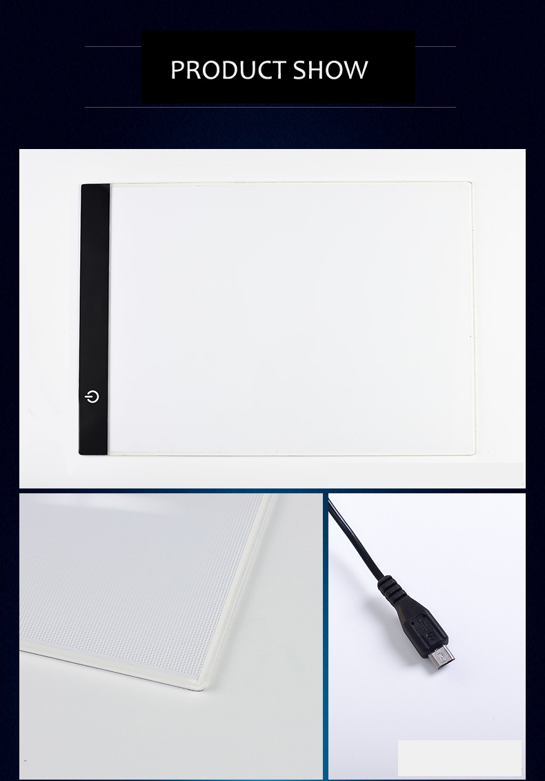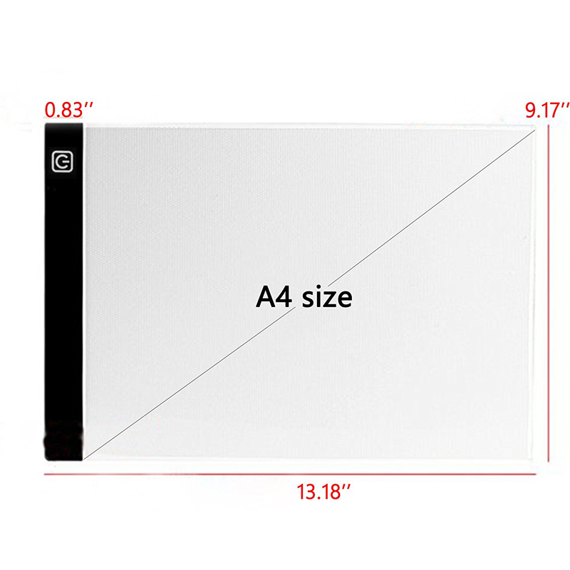 Specification:Frame size: about 33.5 * 23.3cmWorking area: about 31.1 * 23.3cmThickness: about 0.35cmMaterial: AcrylicLight source: LEDAdjustable light:L1-L2-L3Voltage: 5VPower: 2.2WFeature: