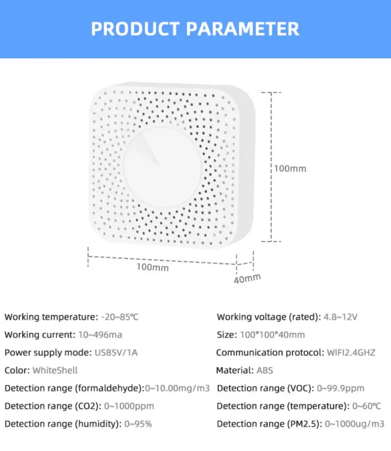 Диапазон обнаружения (формальдегид): 0 ~ 10,00 мг/м3 диапазон обнаружения (VOC): 0 ~ 99.9ppm