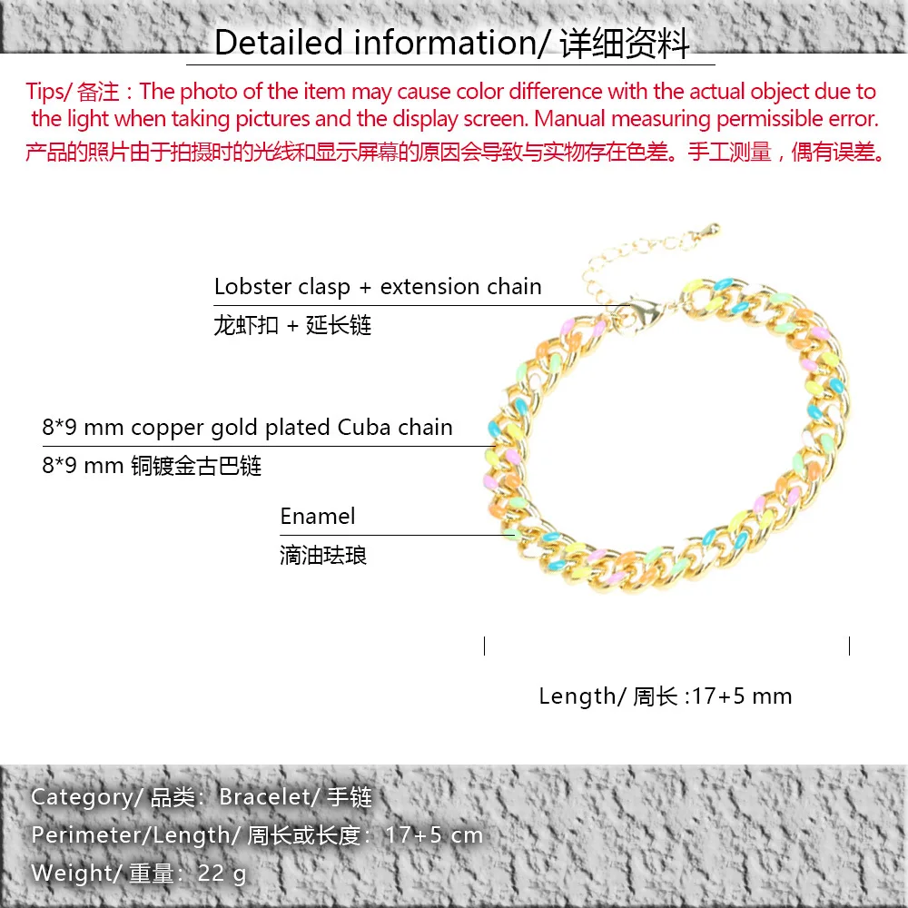 Name:New Hip Hop Punk Macaron Enamel Rainbow Chain Colorful Cuban Bracelets Trendy For Men Women Girls Female Jewelry Christmas Gift