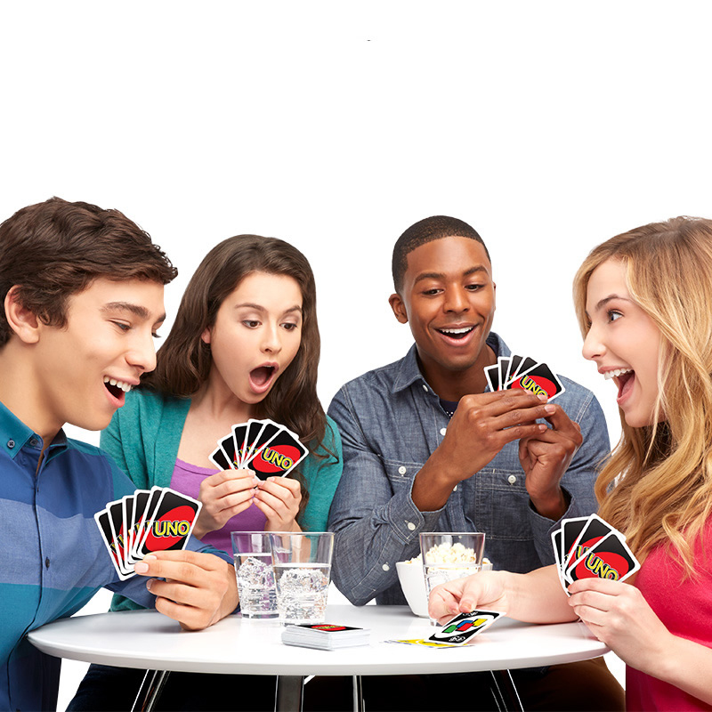 UNO-это карточная игра, которую легко подобрать и невозможно сложить! Все, что нужно, чтобы выиграть, это небольшая координацию между цветами (красный, зеленый, синий и желтый) и цифрами. Эта Веселая семейная карточная игра занимает всего несколько минут, чтобы научиться и очень весело играть! В этой веселой гонке, чтобы избавиться от всех ваших карт, игрок по очереди сопоставляет одну из своих собственных карт с картой, которая появляется лицом вверх на сбросе либо по цвету, либо по номеру. Если вы не можете воспроизвести карту из своей руки, вы должны получить карту из ворса. С 32 специальными экшн-картами-скипами, реверсами, нарисованными Twos, Wild и Draw Four Wild-результат игры может измениться в любой момент! Меняющую цвет дикую карту можно воспроизводить в любое время, чтобы изменить текущий цвет костюма. Не забудьте кричать «UNO», когда у вас есть, но одна карта останется! Первый игрок, который избавится от всех своих карт, выиграет игру.