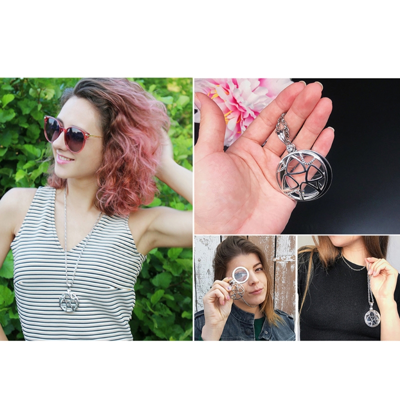 Размер: колье с лупой длиной цепочки подходит для большинства людей. Можно носить с собой в любом месте, отлично подходит для ежедневного использования. Увеличительное стекло поможет вам наблюдать за вещами более четкими.