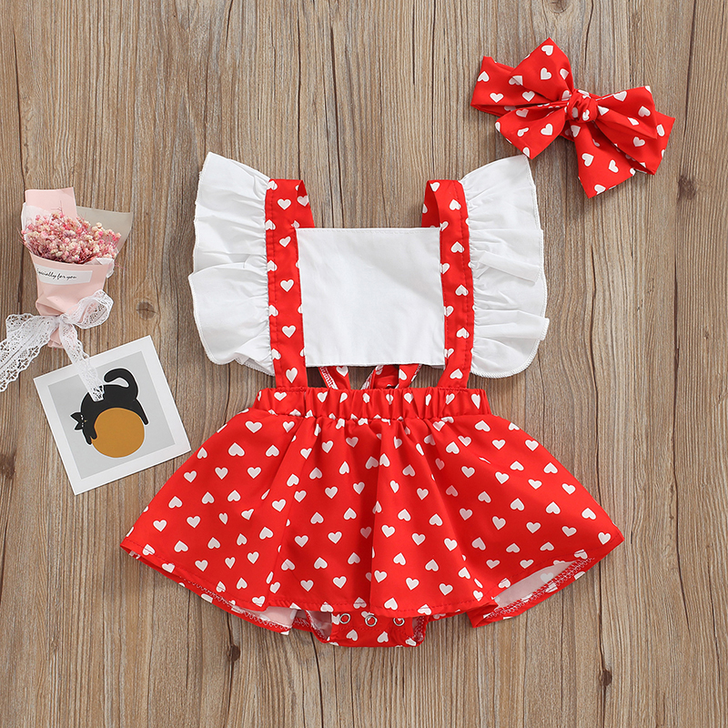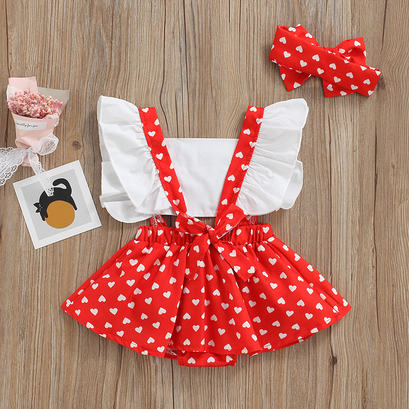 Летний комбинезон для маленьких девочек; Комбинезон в стиле пэчворк с рукавами-крылышками и принтом в форме сердца; Повязка на голову с бантом