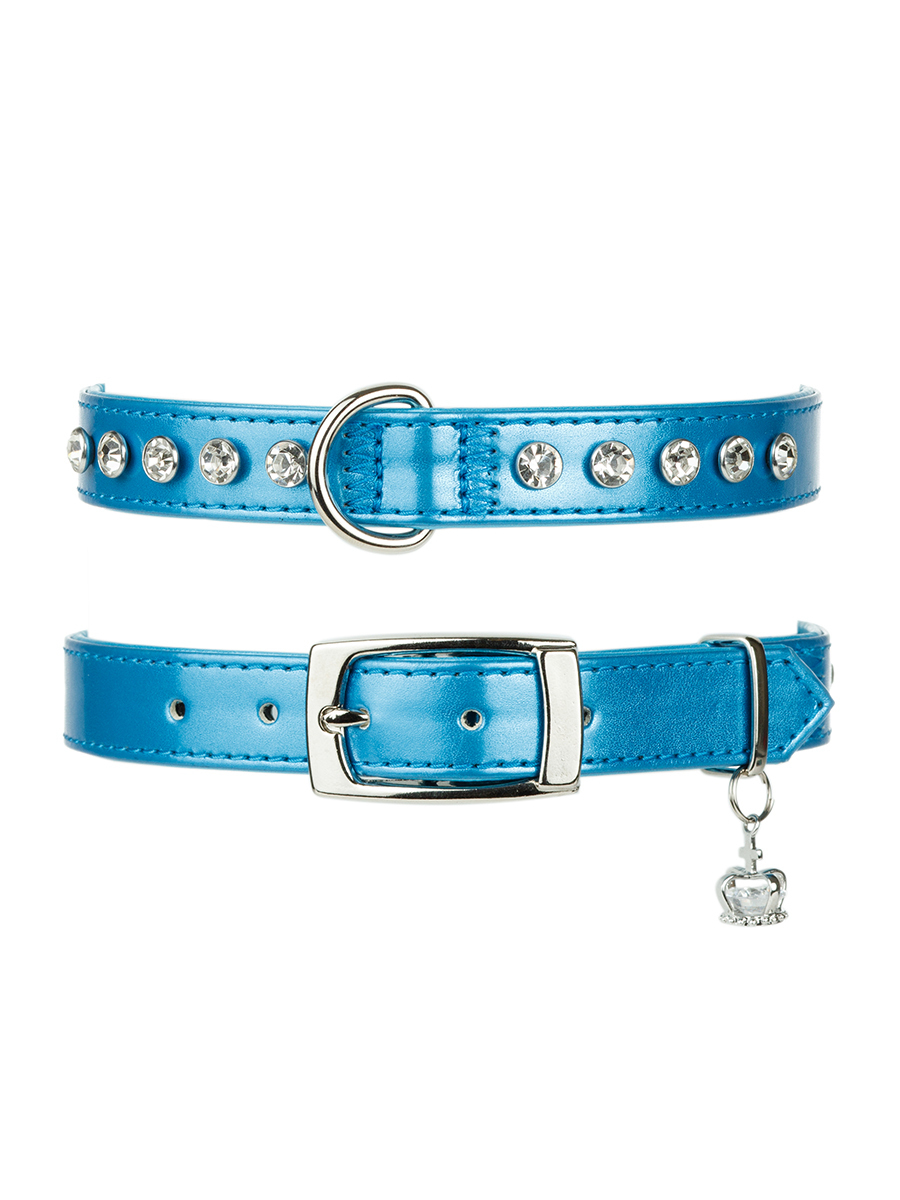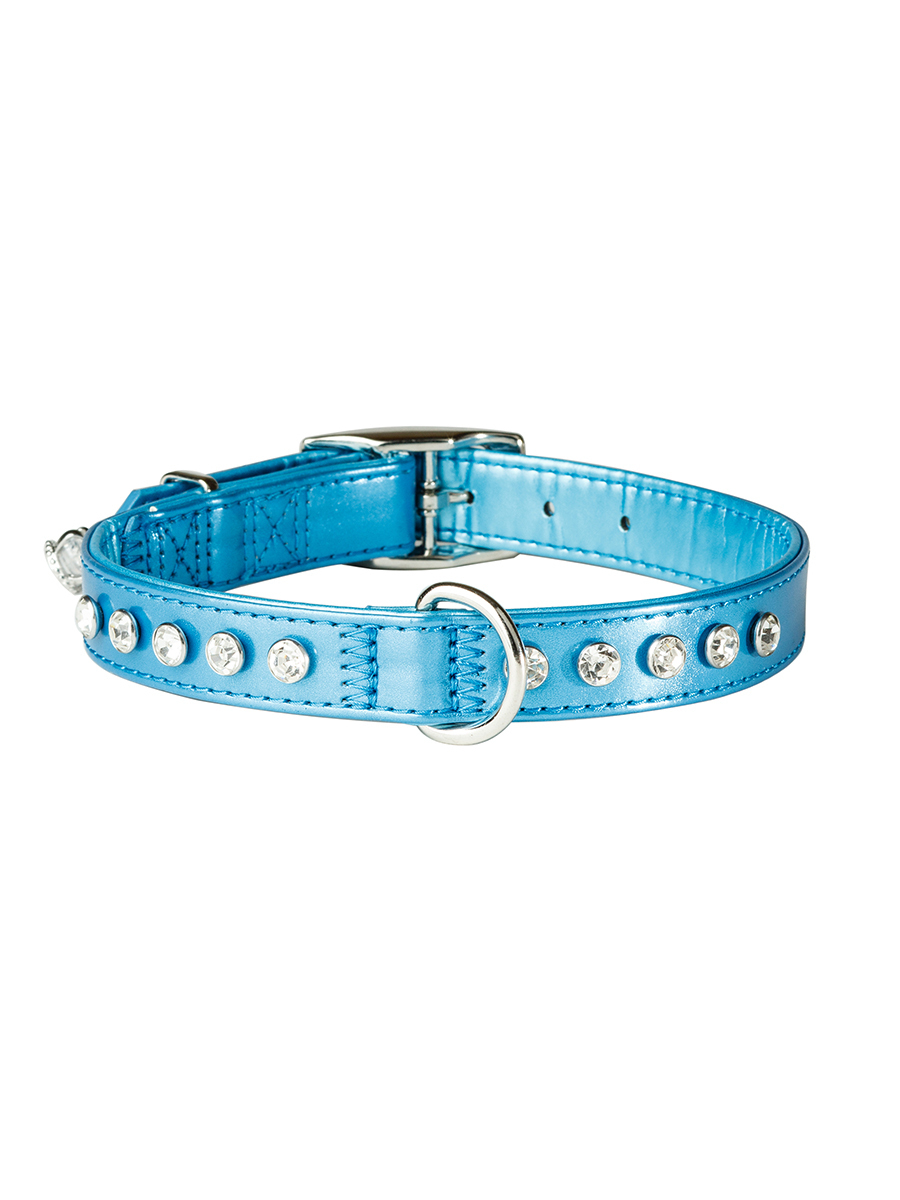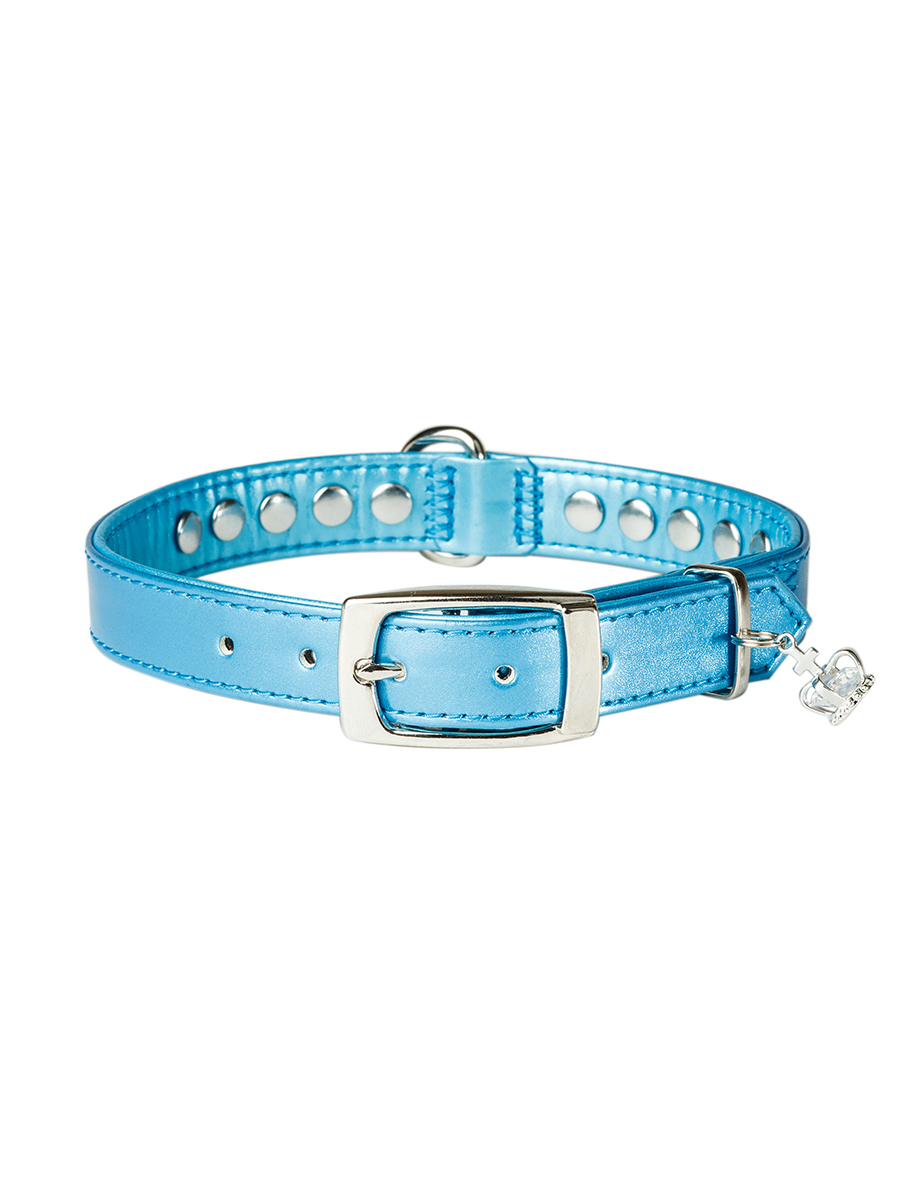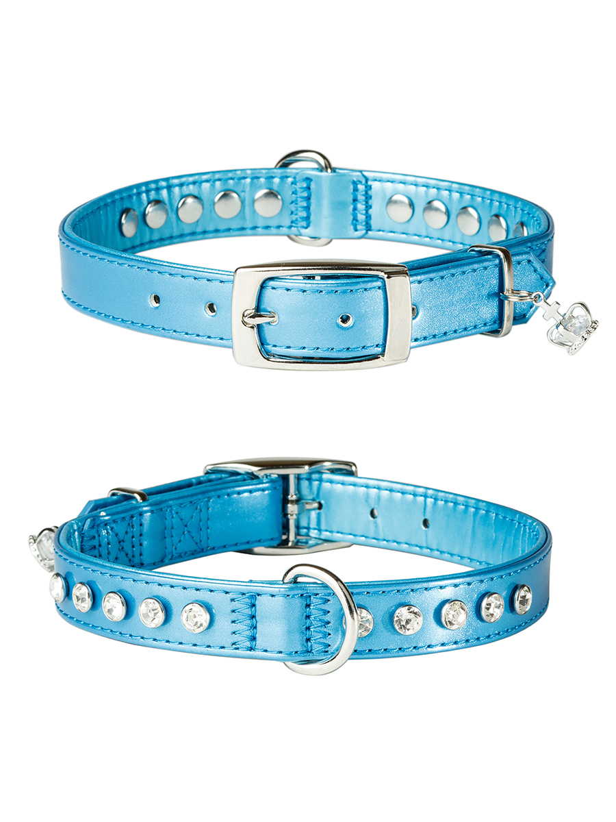Ошейник с напылением жемчужной пудры и защитным покрытием для собак средних пород до 20 кг. Голубой, размер M (обхват шеи 31-39 см) Серия: АЛМАЗНАЯ ПОДВЕСКА. УНИКАЛЬНАЯ ОБРАБОТКА : эко-кожа имеет двойное покрытие; первый слой из жемчужной пудры придает ошейнику перламутровый блеск, второй слой защищает ошейник от воздействия внешней среды. Не трескается и не промокает. "Гламур на всю жизнь". БЕЗОПАСНЫЙ: Клёпки литые. Не цепляют и не портят шерсть и кожу. Особая технология расположения камней, качественная обработка краев без зацепок. Для креплений используется высоко-карбоновая сталь.