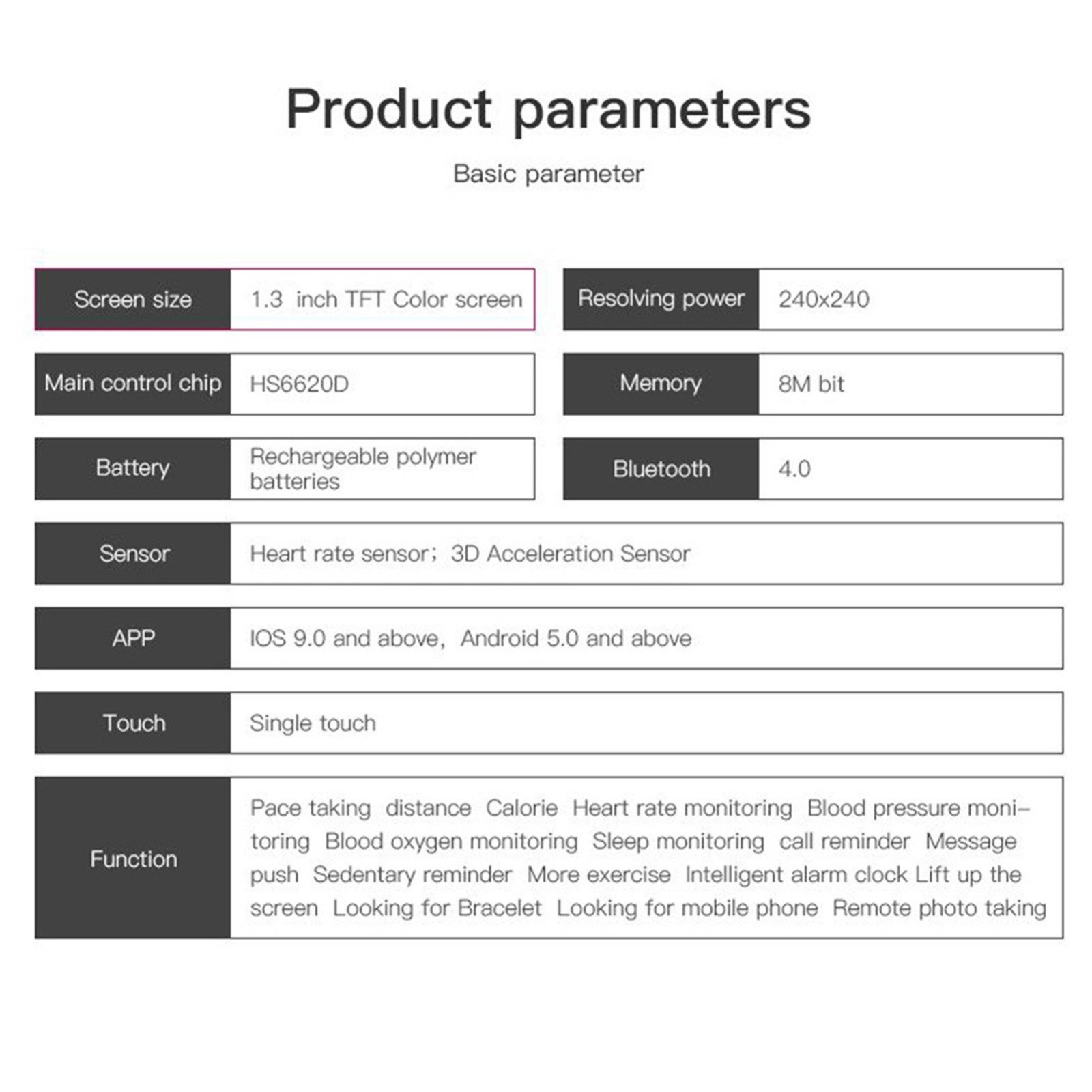 D18S 1.44in Смарт-часы мониторинг сна фитнес-трекер Водонепроницаемый браслет