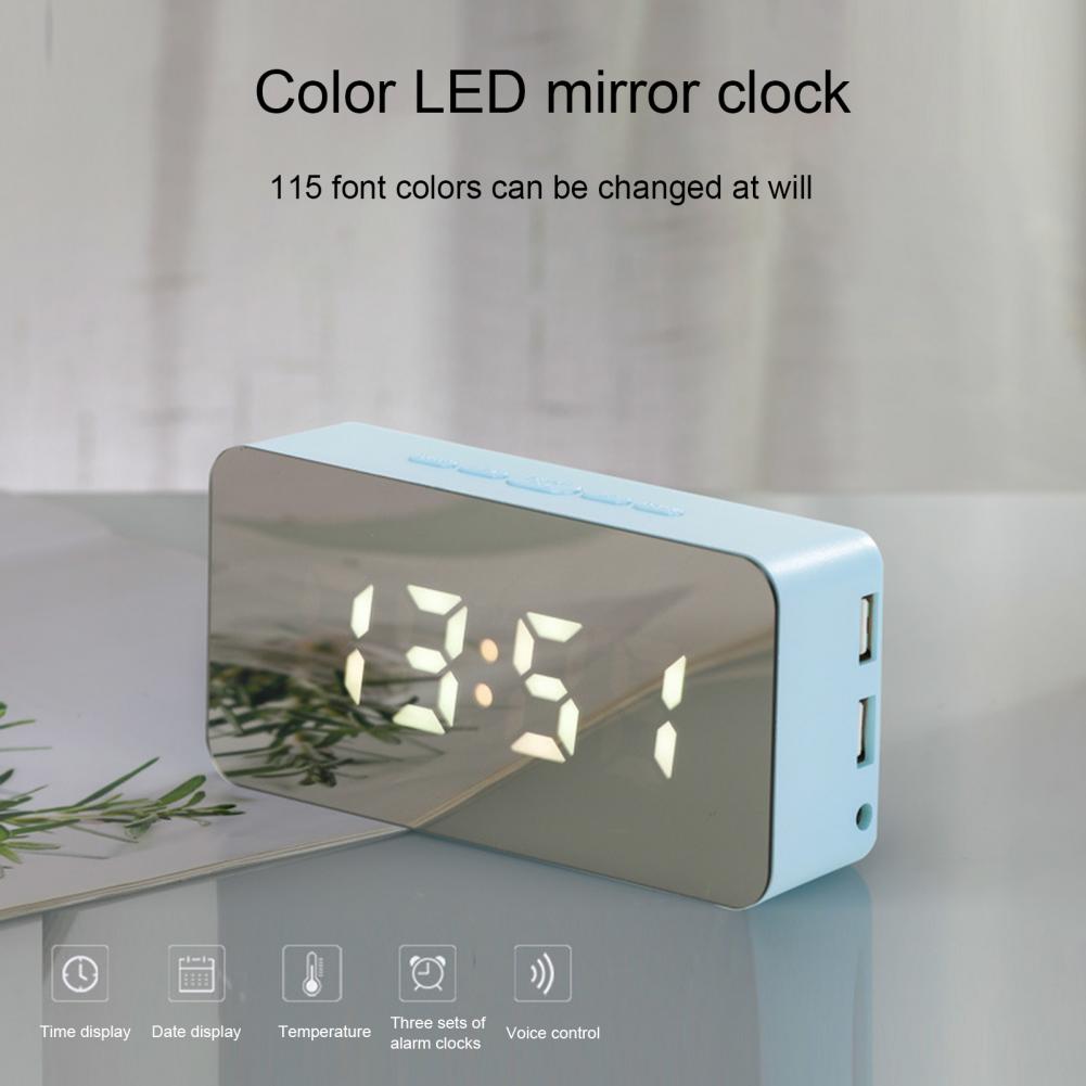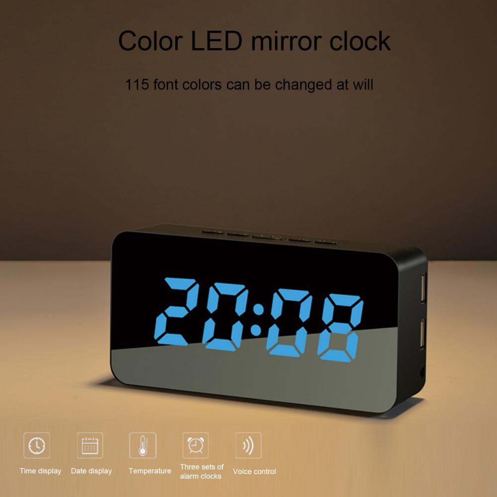 Многофункциональные часы с зеркальной поверхностью с 2 usb-интерфейсами, цифровой светодиодный Будильник с кабелем, бытовые принадлежности