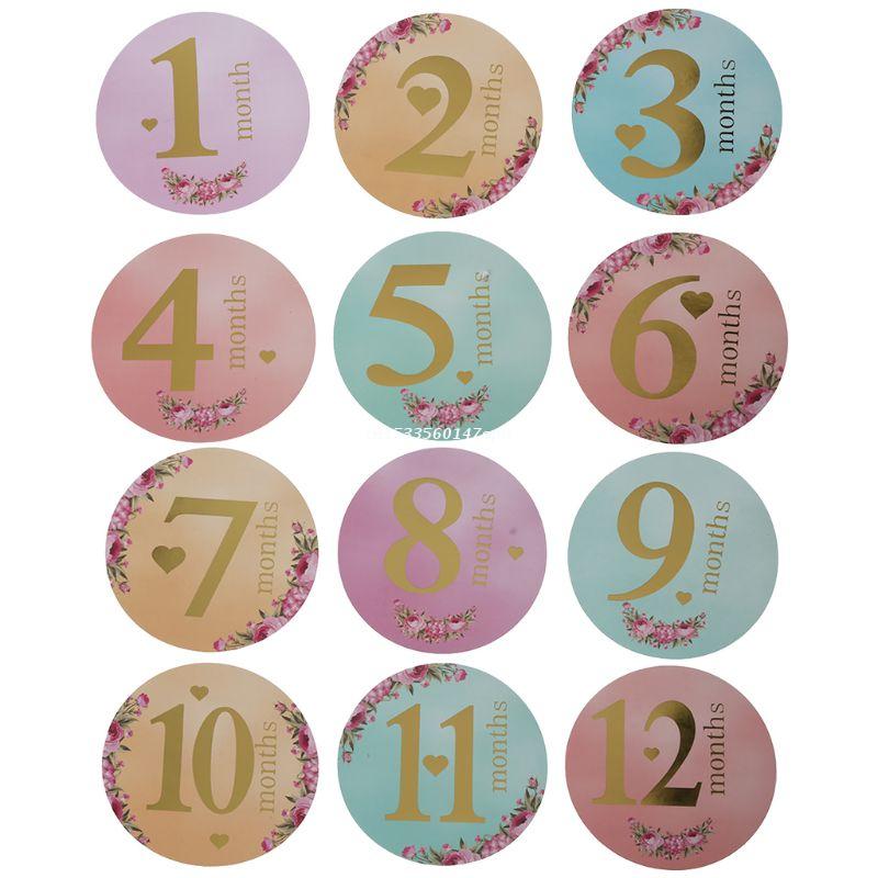 12 шт./компл., месяц, наклейка, Детская фотография, памятная веха, месяц, новорожденные дети, памятная карта, номер, фото реквизит, Прямая поставка