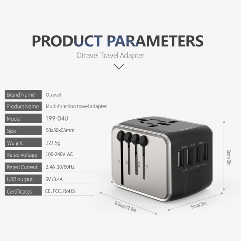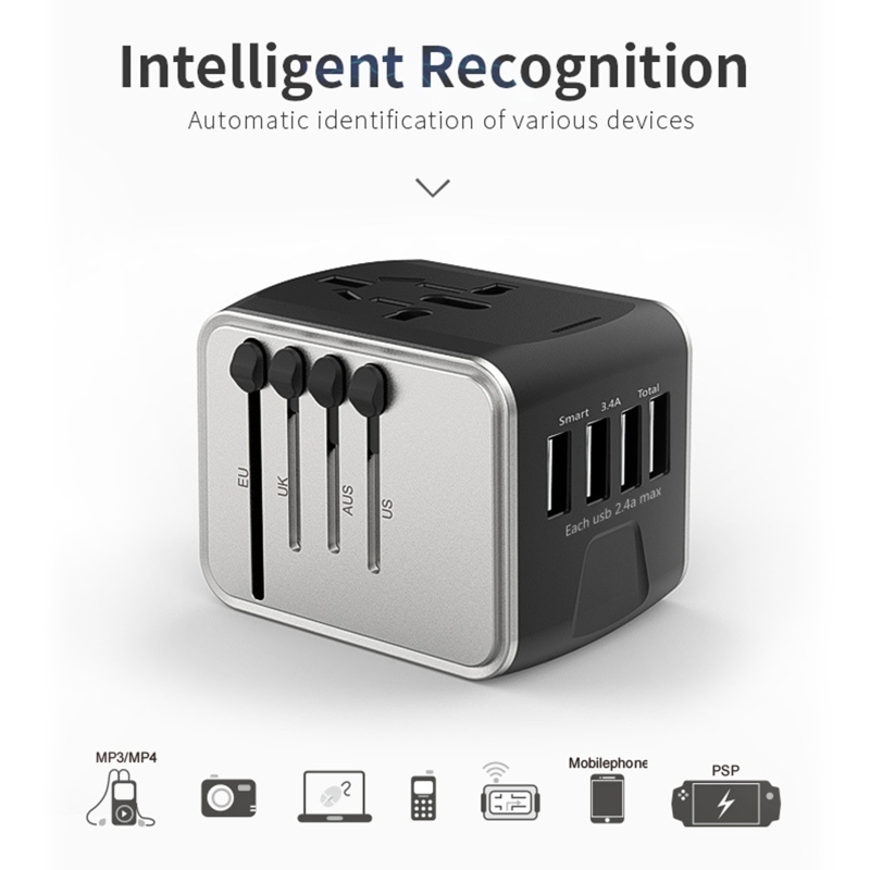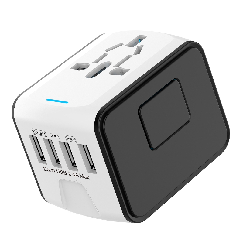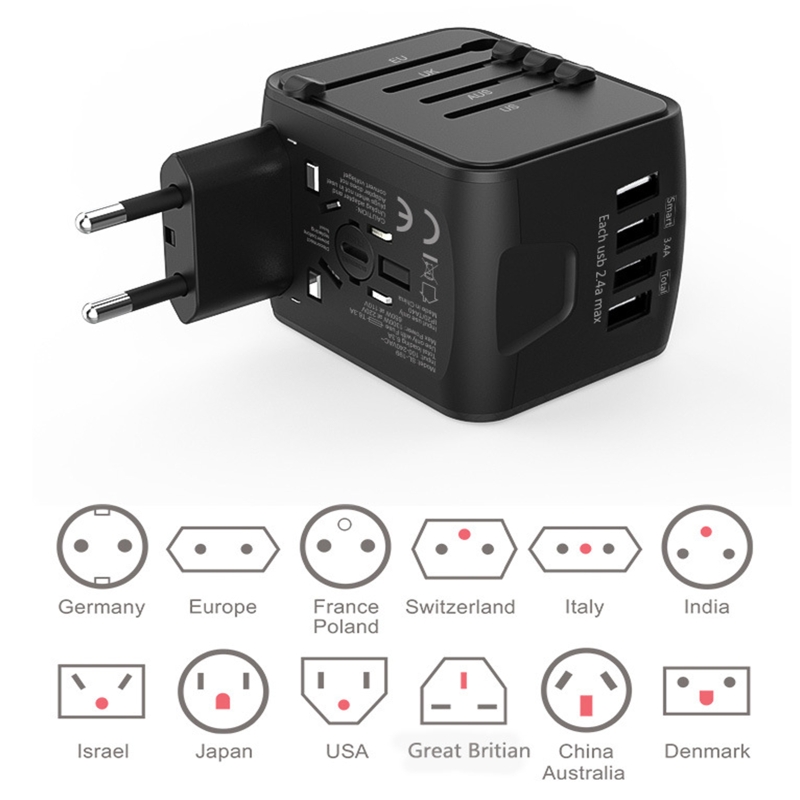 Универсальный: Этот глобальный дорожный адаптер поставляется с Великобритании (тип G)/США (тип A/B)/Австралию (тип I)/ЕС (тип C/F) четыре различных спецификации вилок и 4 usb-порта для зарядки, они могут использоваться в более чем 200 странах/регионах, таких как США, Канада, Великобритания, Европа, Китай, И Японии.