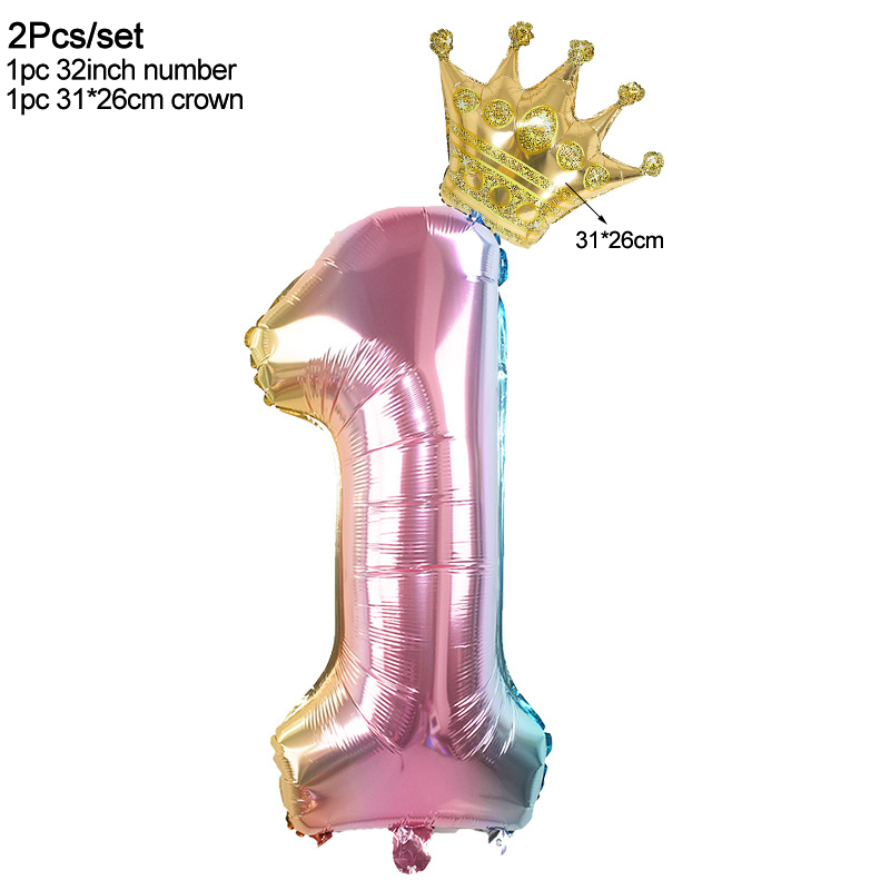 2 шт. 32 дюйма радужные фольгированные шары с короной для детей, украшения для дня рождения для мальчиков и девочек, фигурки из розового золота, Globos H & Z