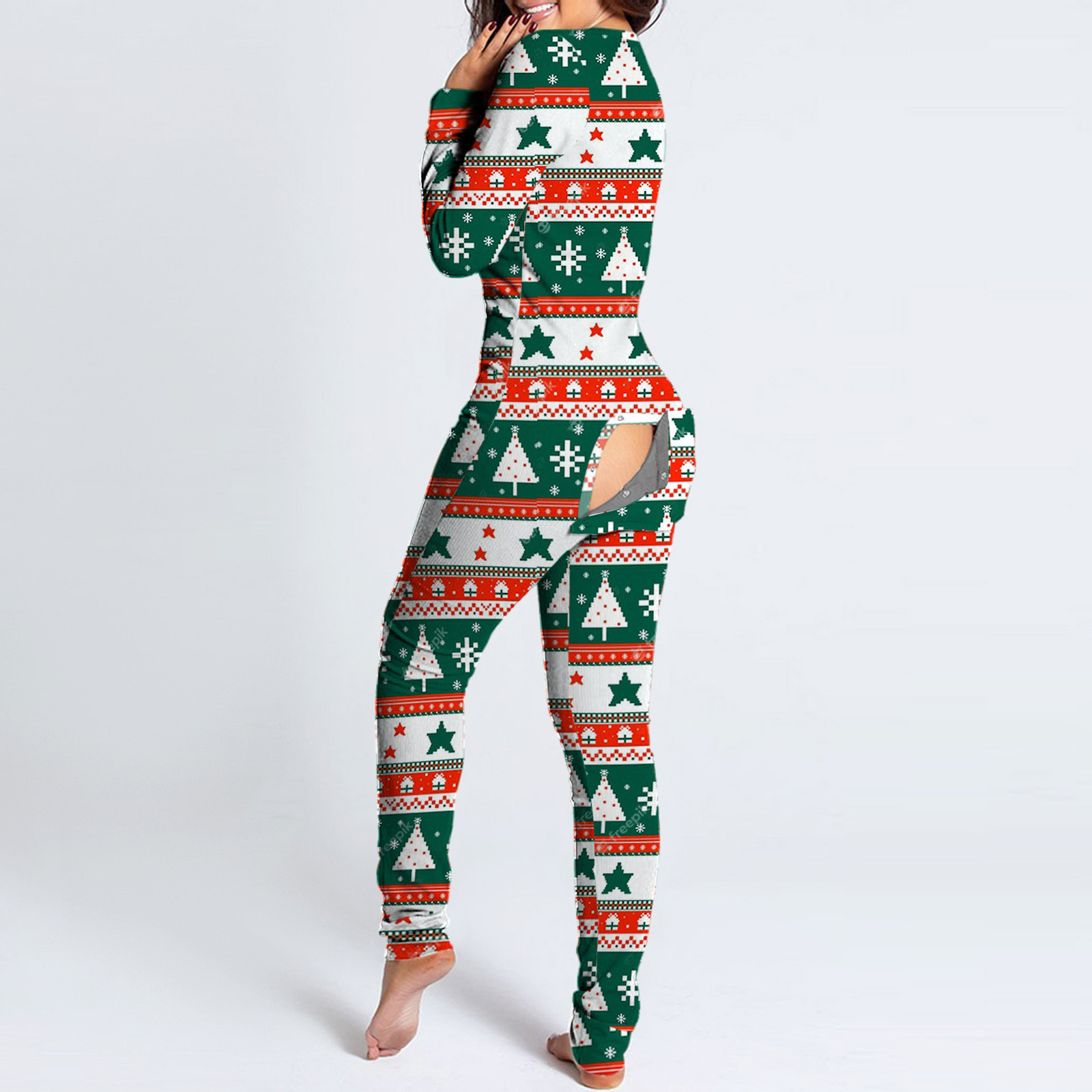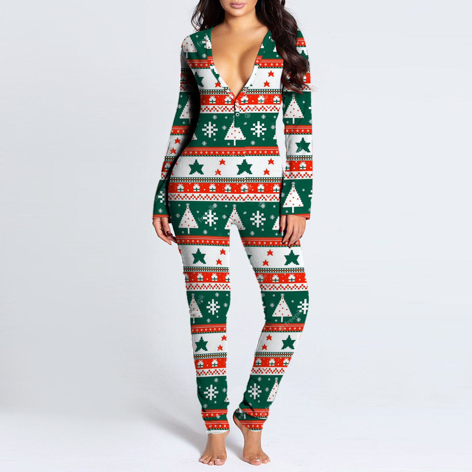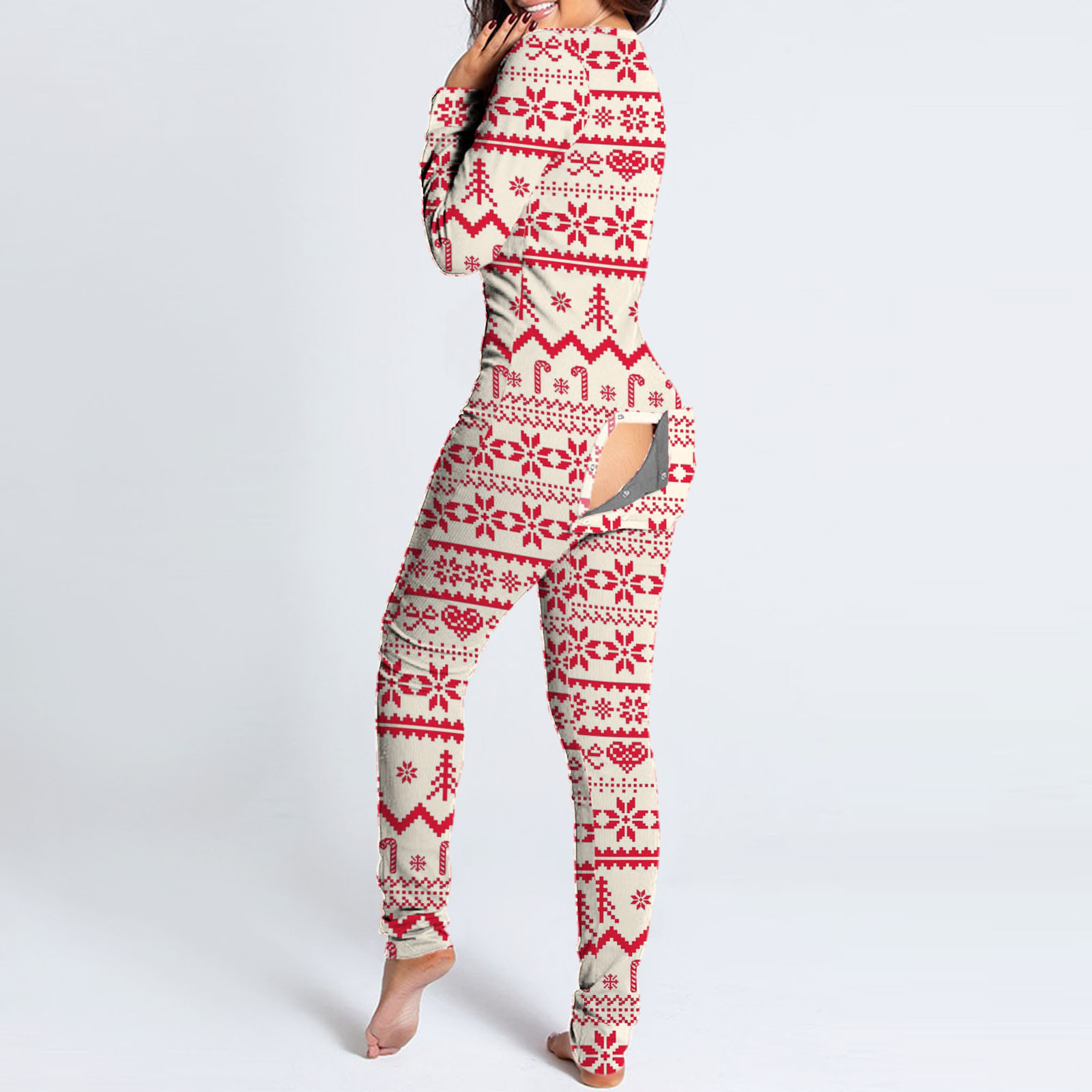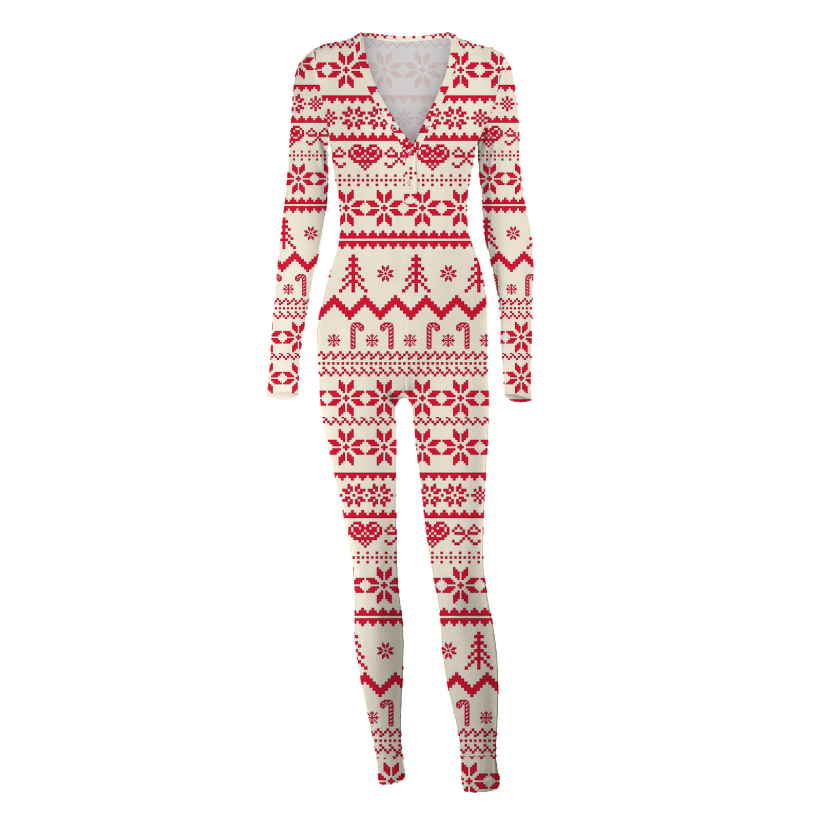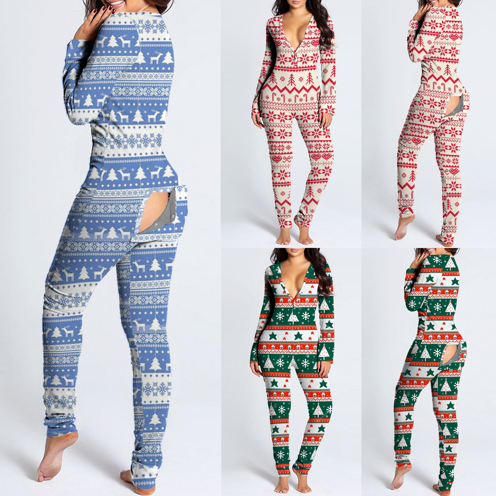 Для женщин на пуговицах с рождественским принтом функциональный отворот на пуговицах комбинезон для взрослых