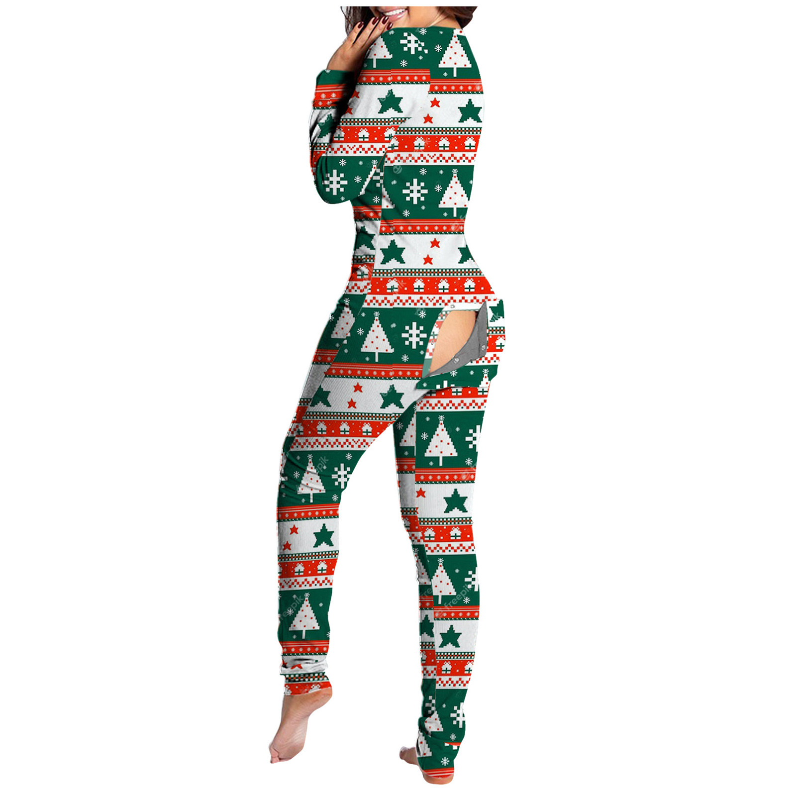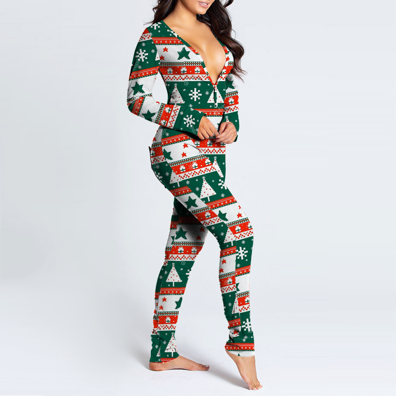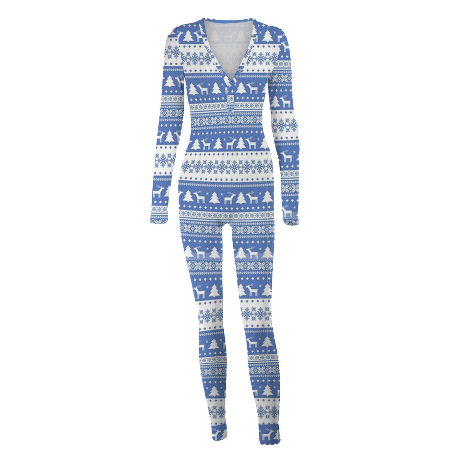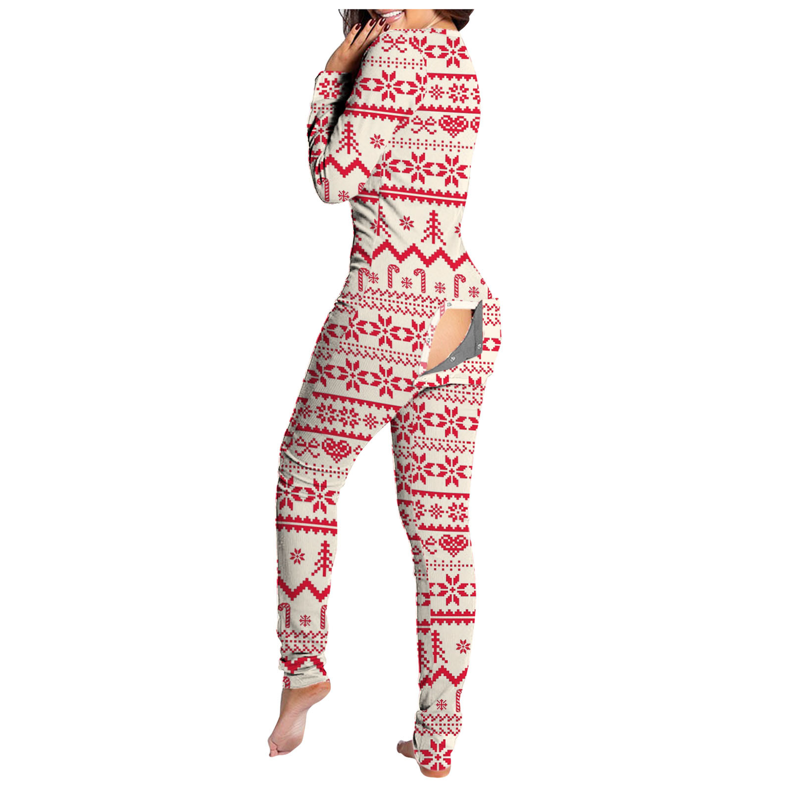 Для женщин на пуговицах с рождественским принтом функциональный отворот на пуговицах комбинезон для взрослых