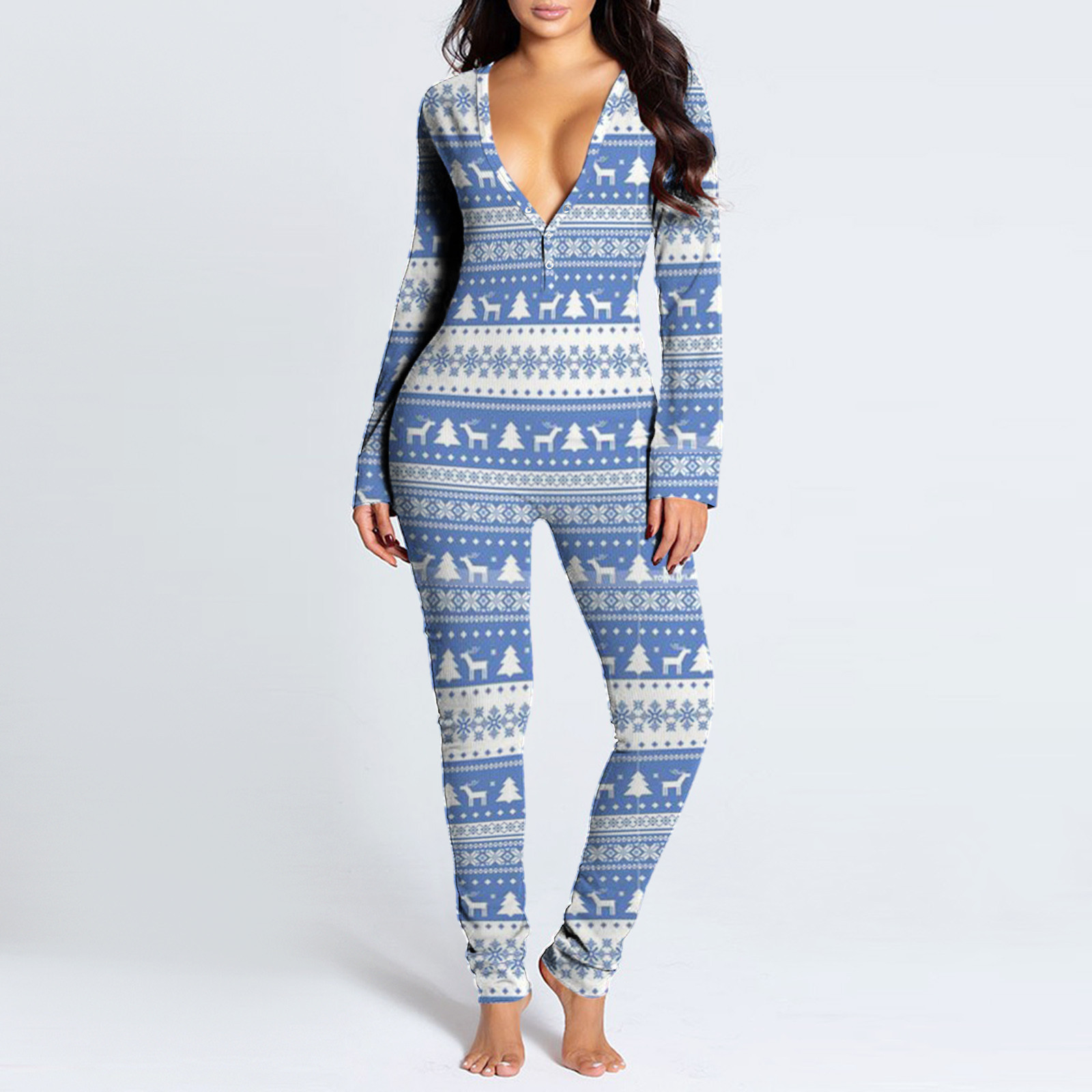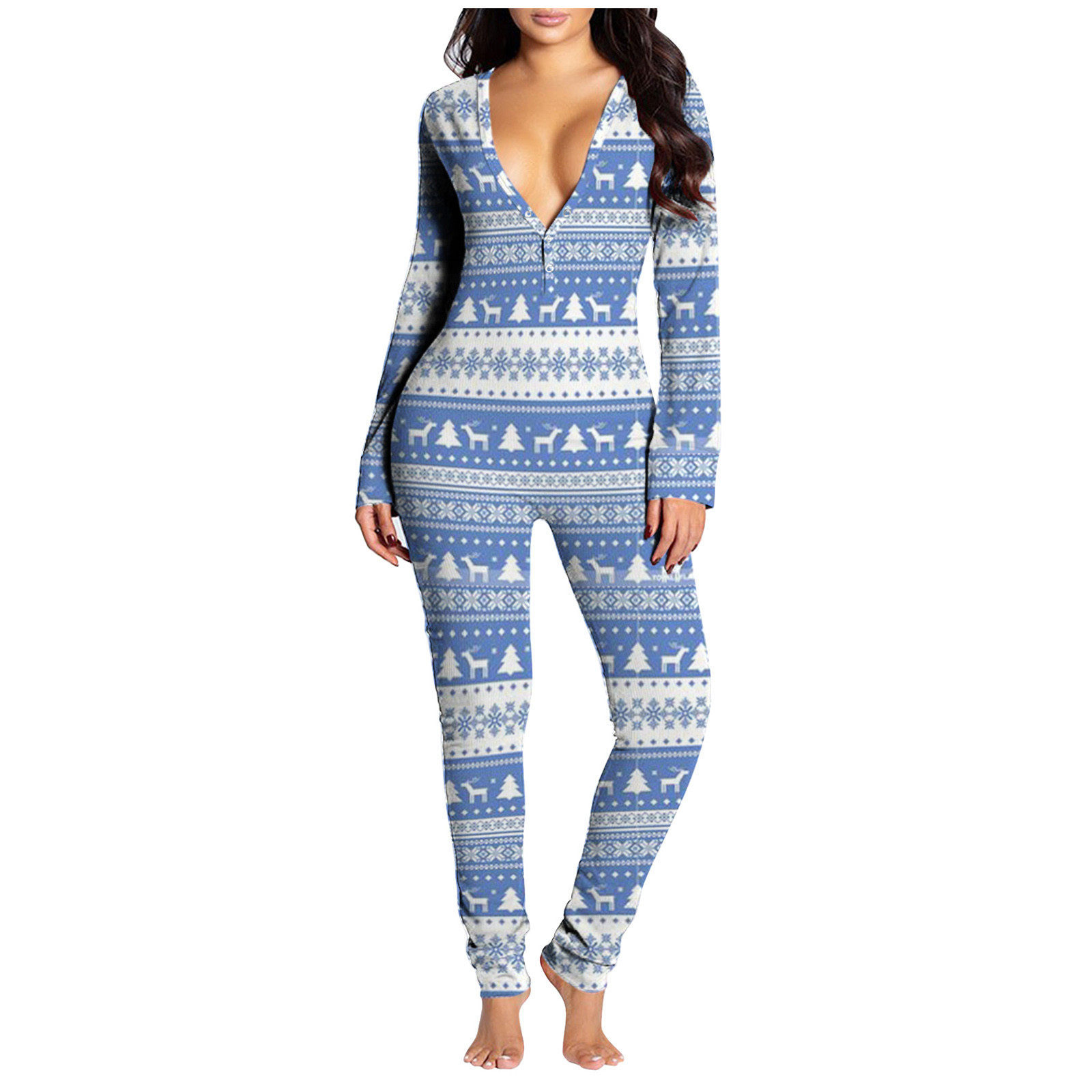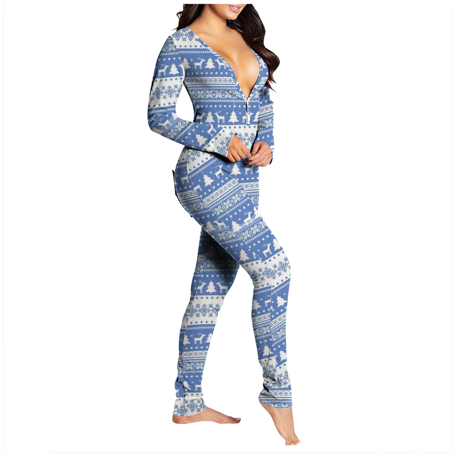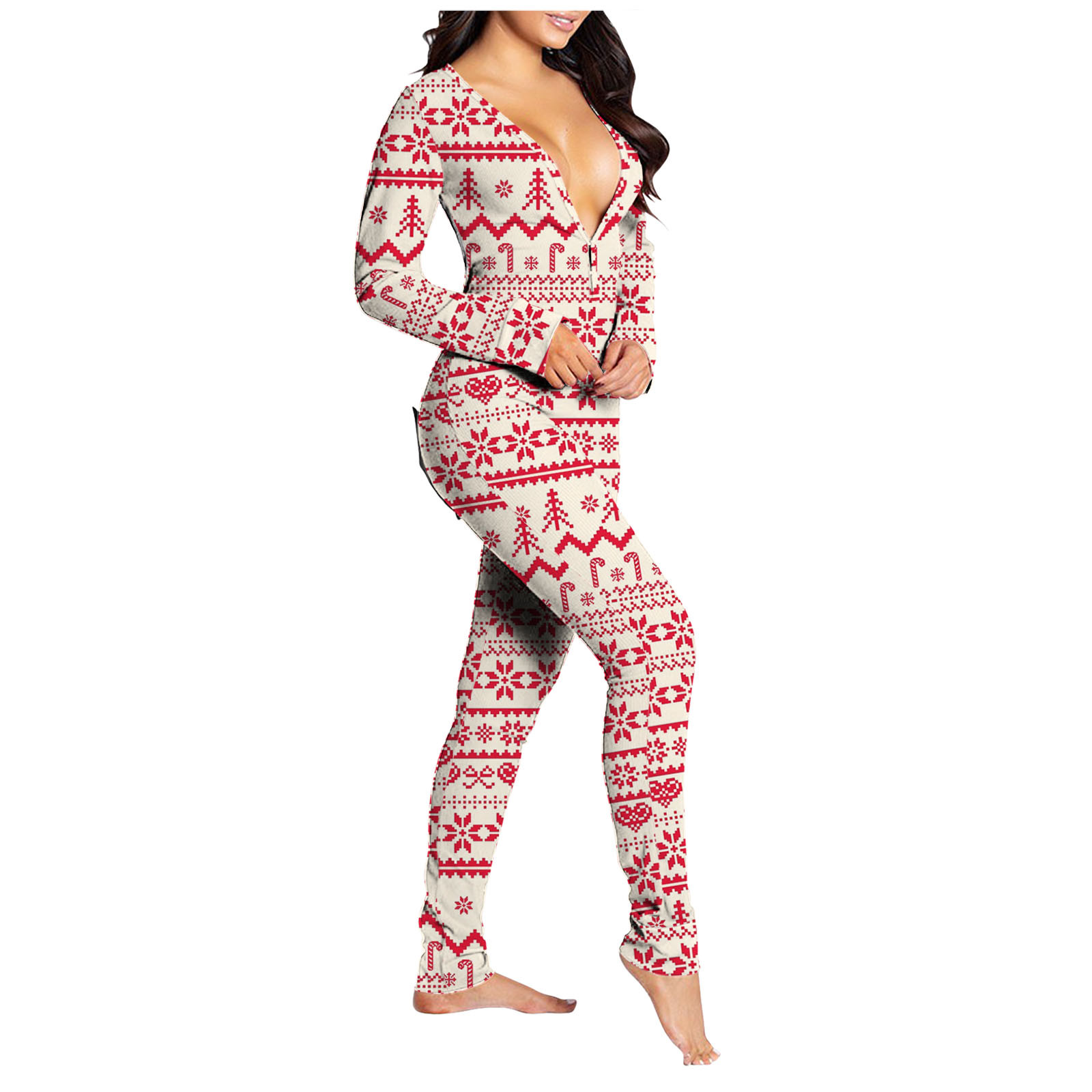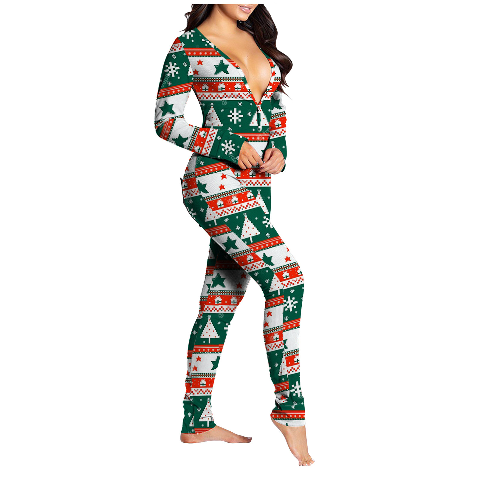 Для женщин на пуговицах с рождественским принтом функциональный отворот на пуговицах комбинезон для взрослых