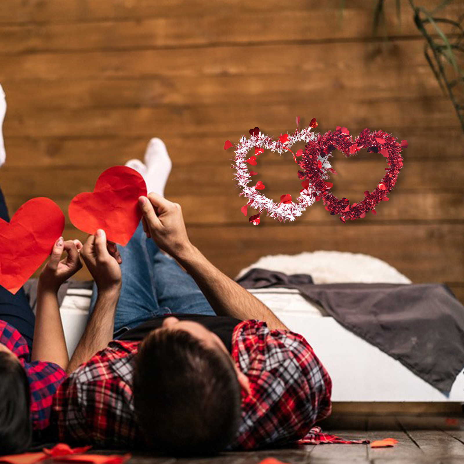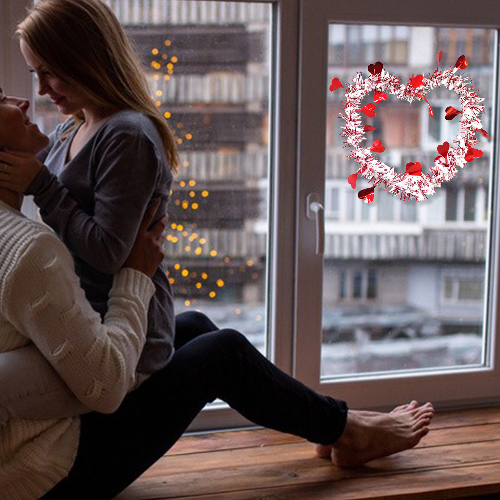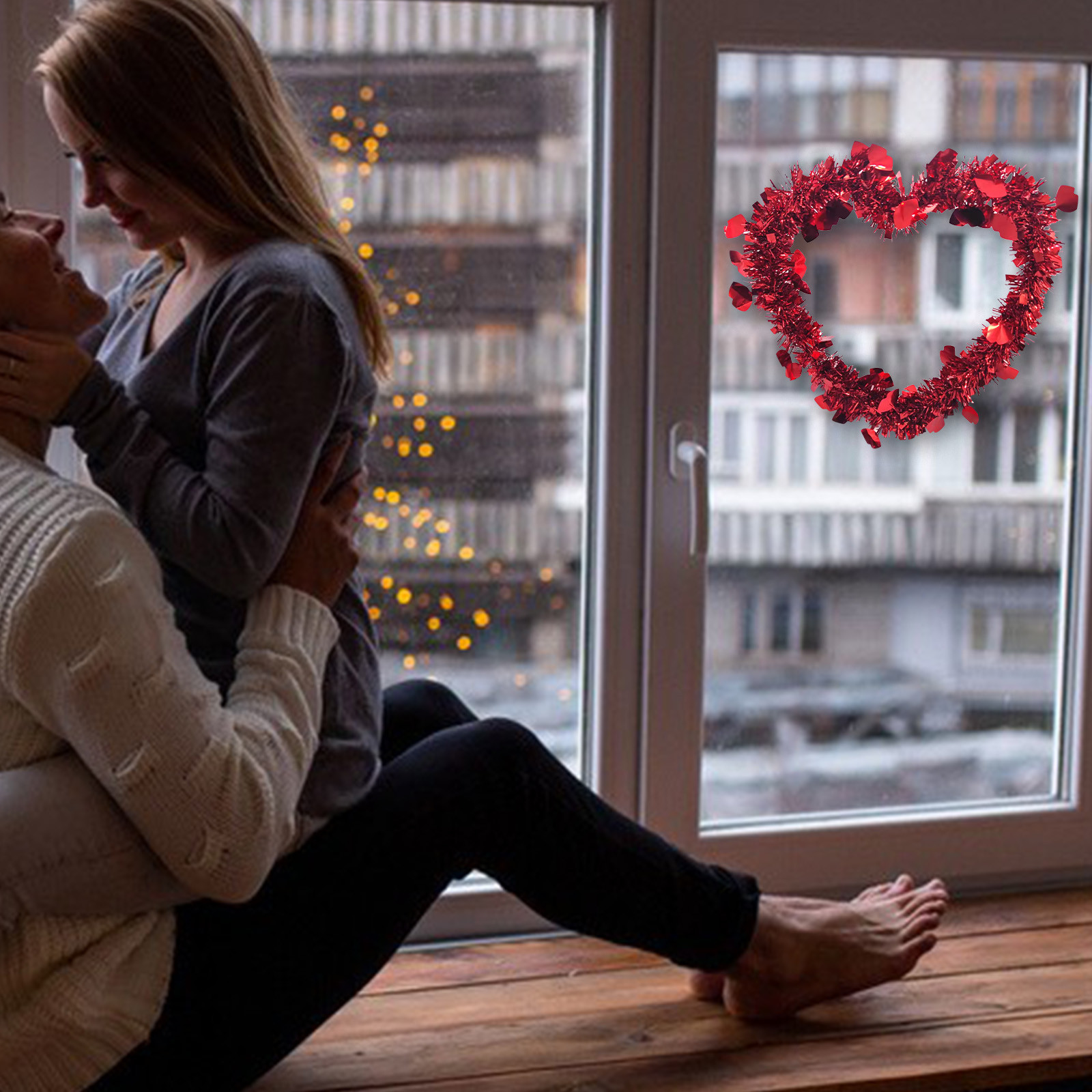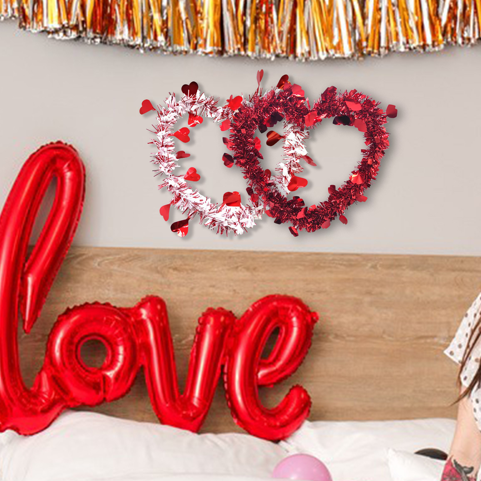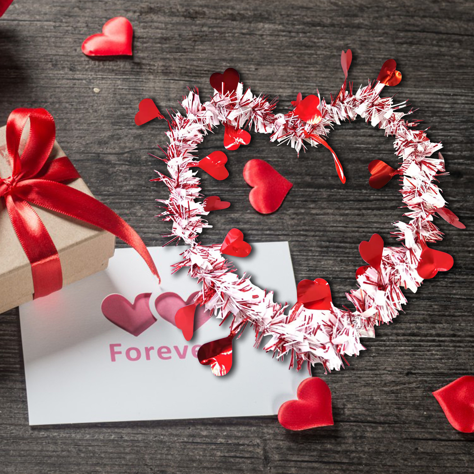 - Эти яркие красные мерцающие нити оставили романтическую атмосферу на День святого Валентина.