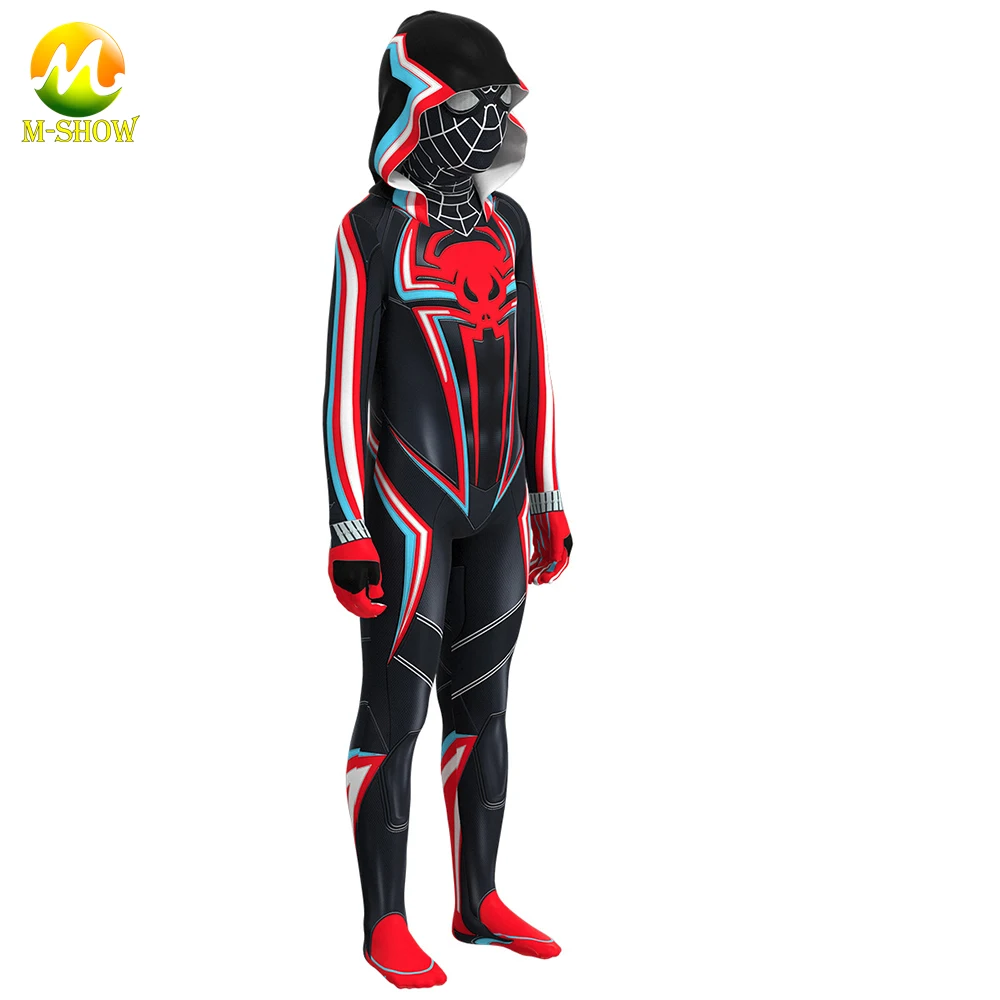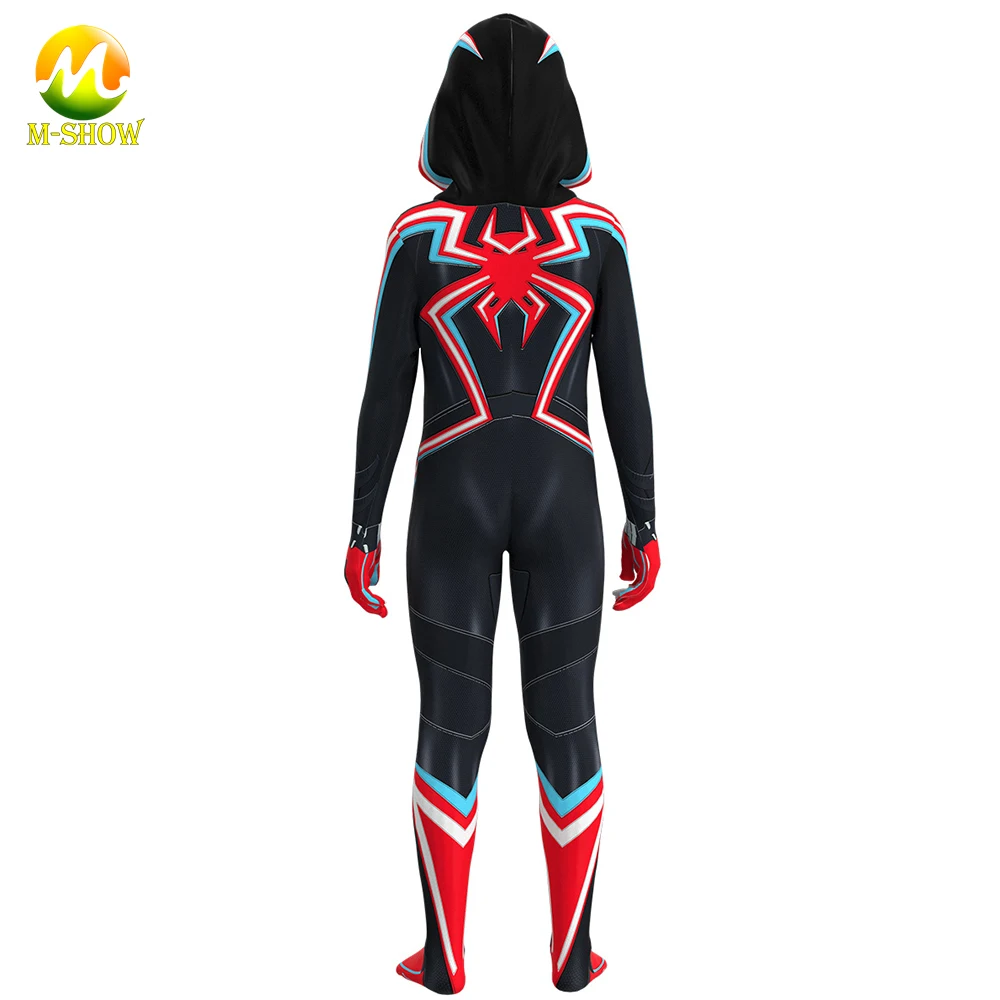 Супергерой паук 2099 маскарадный костюм Майлз Моралес Косплей комбинезон с капюшоном Хэллоуин зентай костюм для взрослых и детей