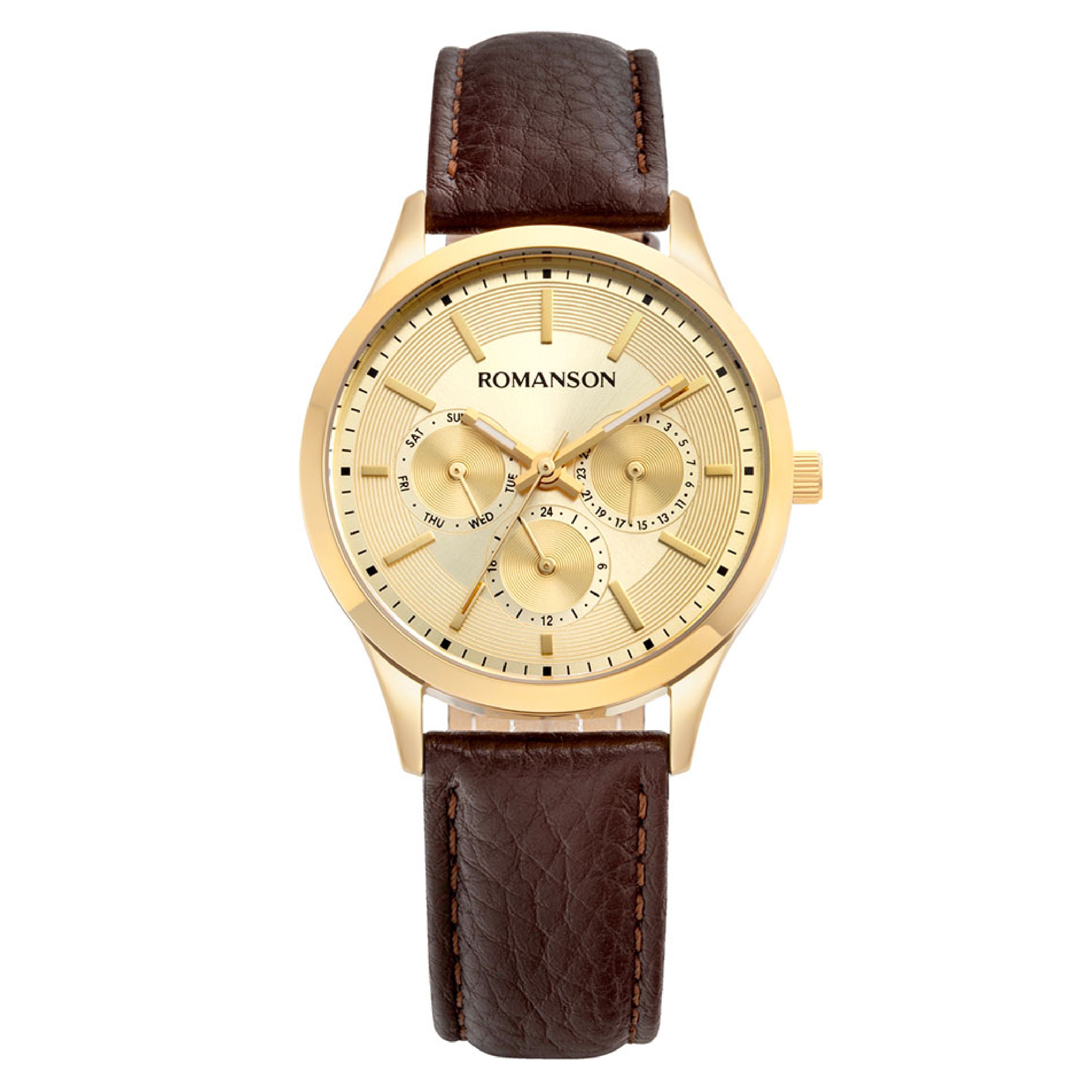 ROMANSON TL 0B10F LG(GD) женские кварцевые наручные часы со стрелочным календарем и