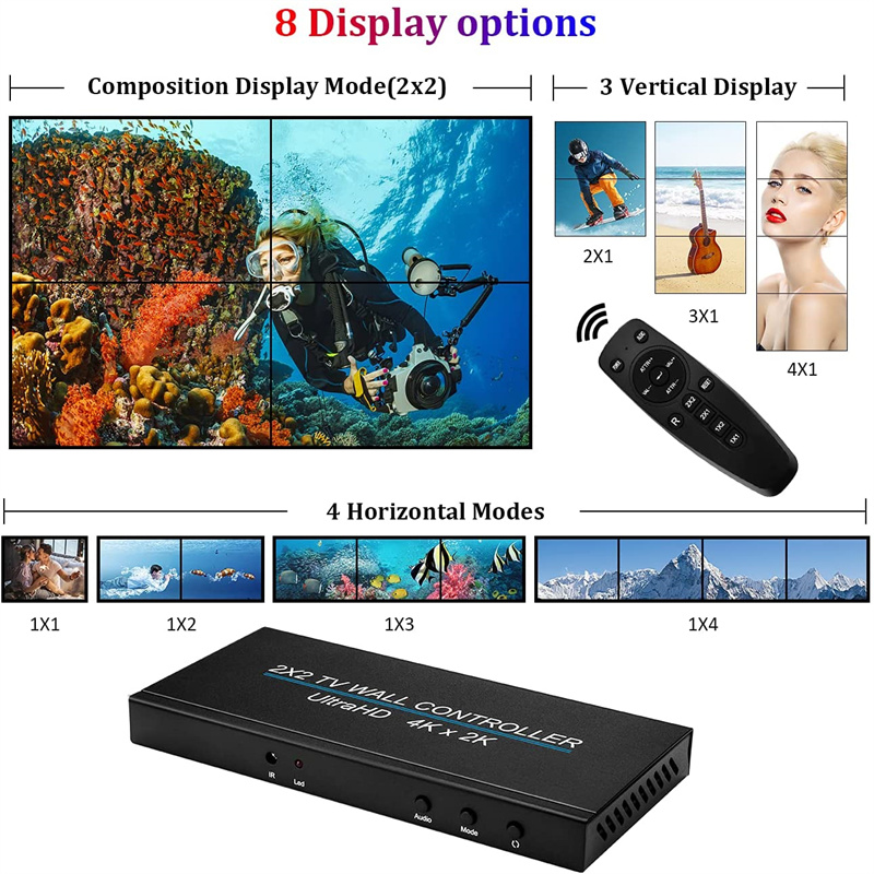 Видео настенный контроллер 2X 2 ТВ настенный процессор управления Поддержка 4 выхода 1080p высокой четкости домашний офис поставка PR продажа