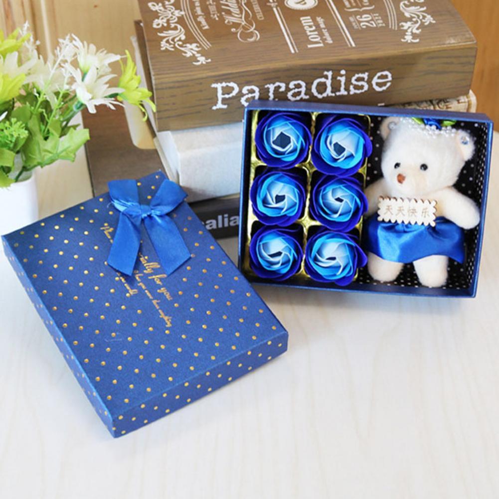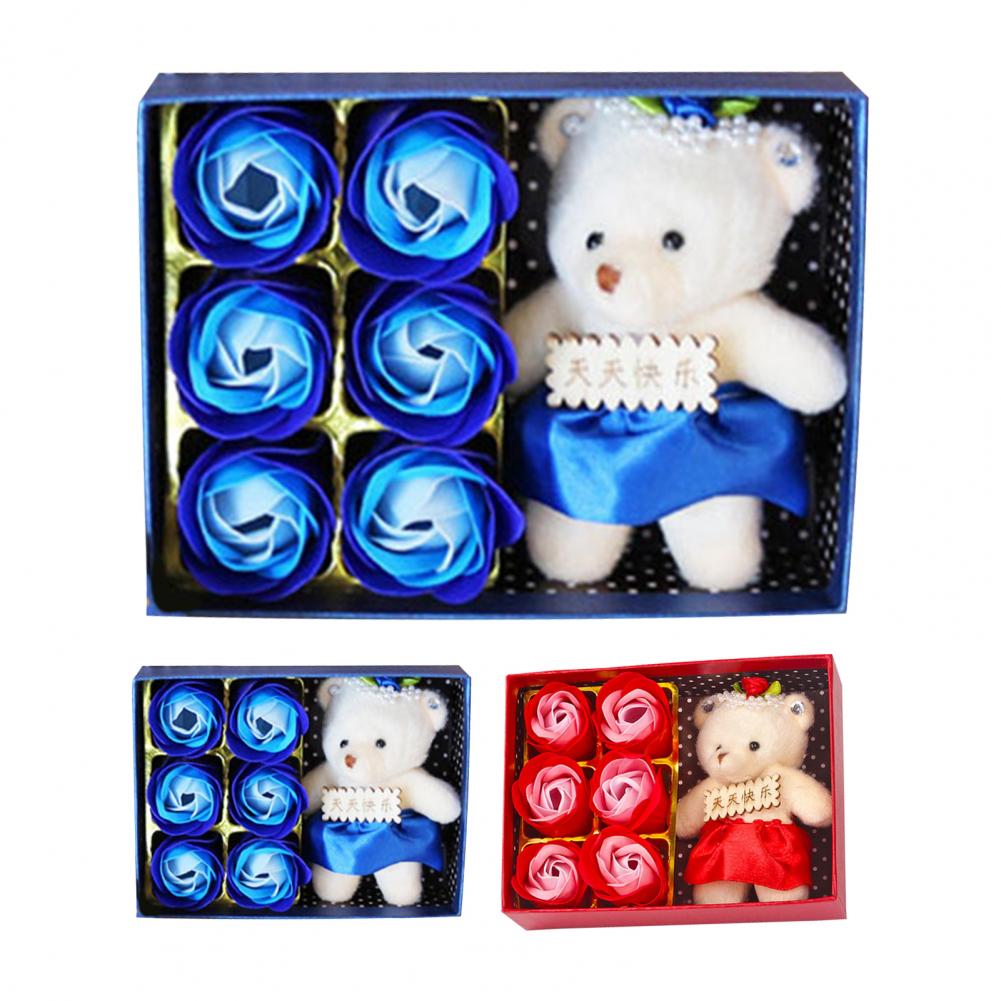 1 Набор, имитирующий цветок, привлекательный, Реалистичный, 2 цвета, мыло, роза, цветок, медведь, Подарочная коробка, набор, свадебный душ, подарки для дома