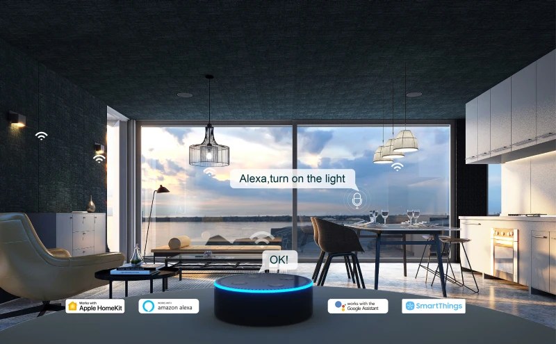 2. 【Освободите свои руки 】Освободите руки с помощью простых голосовых команд с помощью Alexa/Google Assistant/Siri. Пользователи Apple мобильный телефон не должны загружать специальное приложение и напрямую использовать приложение Apple Home, что очень удобно