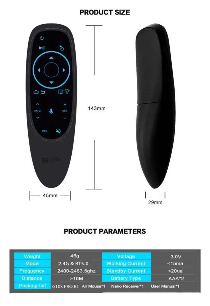 G10S PRO BT: 2,4G USB приемник Bluetooth Поддержка голосового гироскопа подсветка